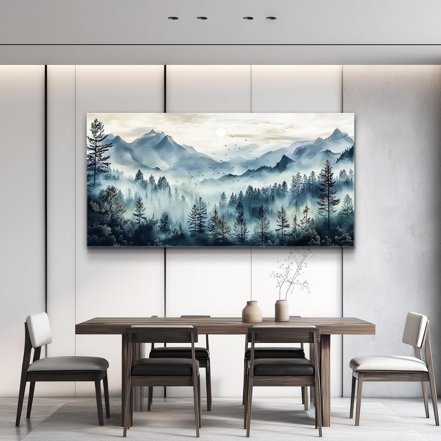 Large Wall Decor for Living Room Canvas Wall Art for Office Wall Decorations for Bedroom Foggy Forest Painting Artwork Room Home Decor 24x48 in