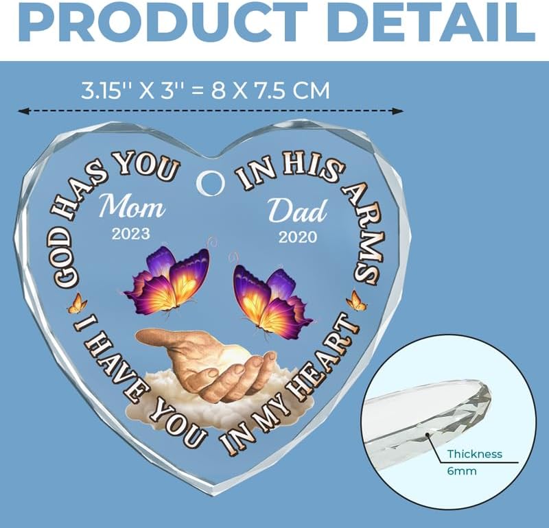 - π Memorial Christmas Ornament: The ornament is crafted from 100% clear glass with beveled edges, measuring 3.15x3 in (8x7.5 cm) in size and 6mm in thickness. It features a one-sided design. You can choose what is printed on these personalized Christmas ornaments! This ornament will be the best Christmas gift for your family members, memorial gifts for loss of loved one, gifts for grieving friends, thanksgiving ornaments for tree.