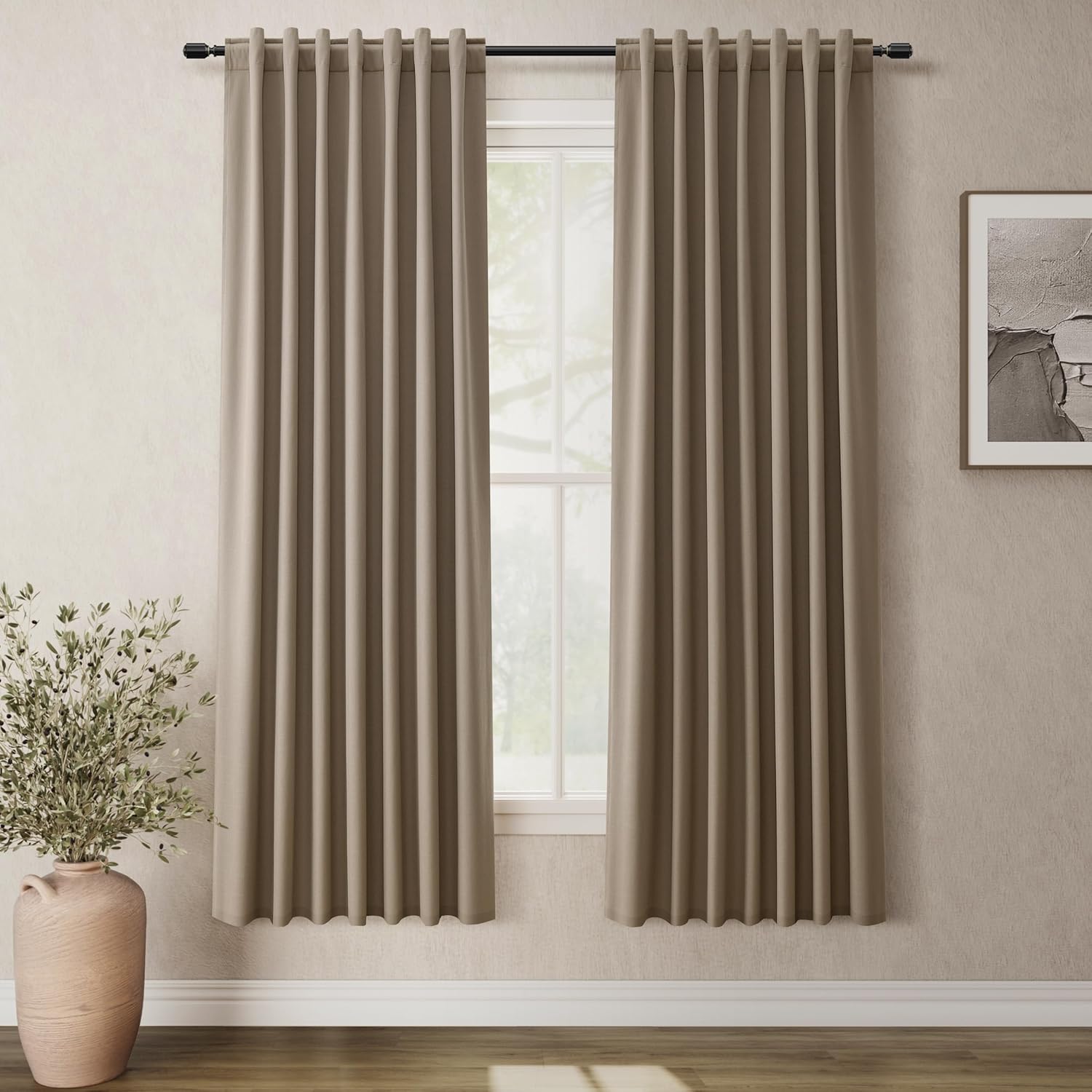 BOODII Linen Blackout Curtains for Bedroom 72 Inch Length 2 Panels Set Room Darkening Curtains Dark Brown Black Out Curtain Neutral Thermal Insulated Living Room Nursery Drapes Back Tab 52x72