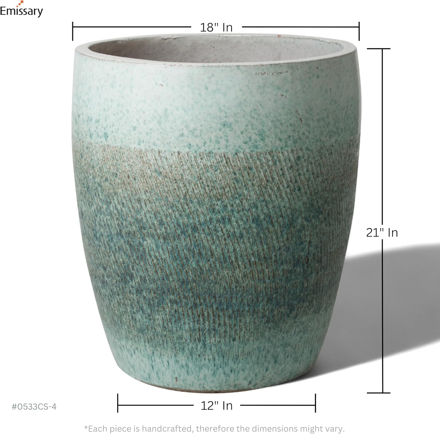 Emissary Bullet 18 in. Coastal Splash Ceramic Round Planter (18 in. L x 18 in. W x 21 in. H) with Drainage Hole