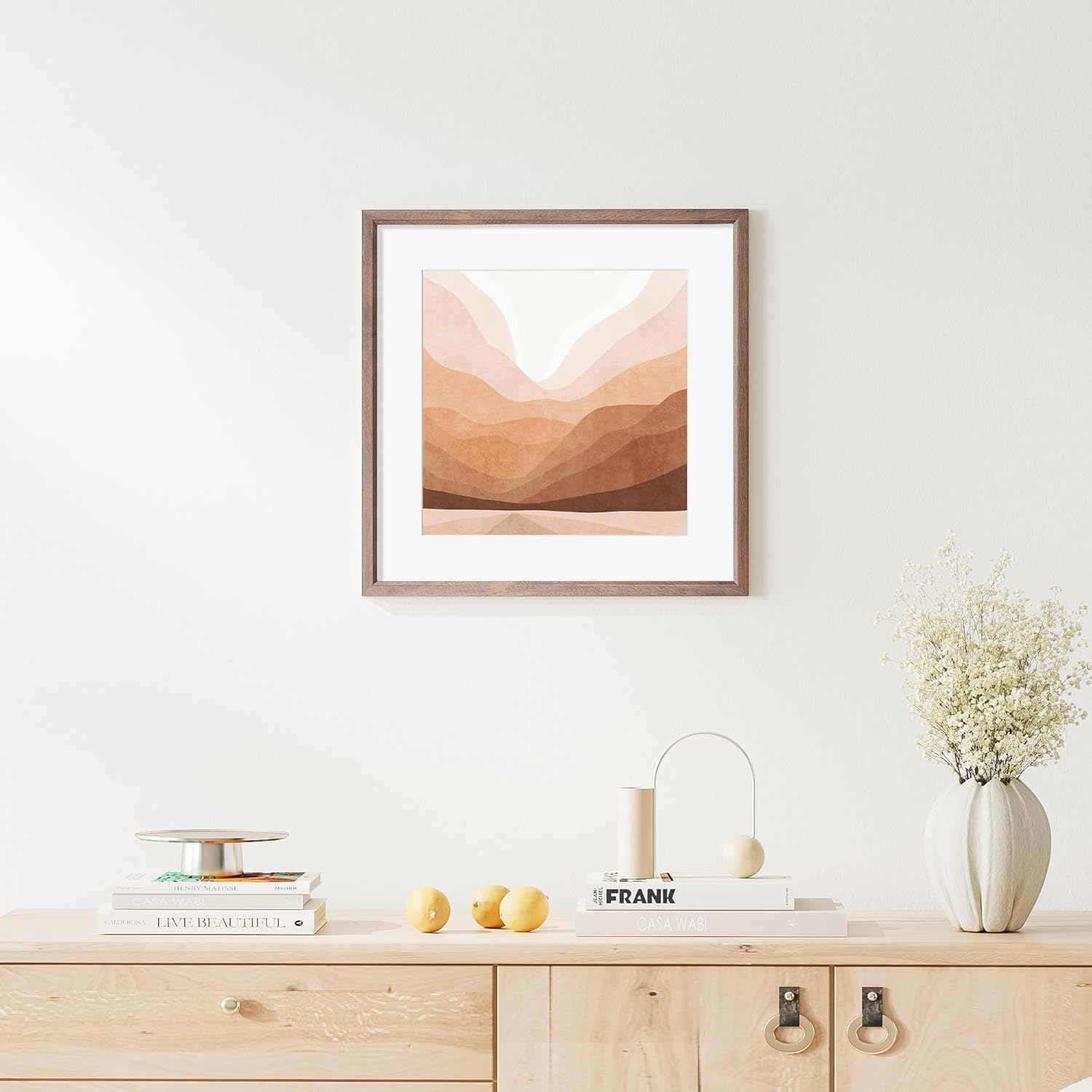 16x16 Picture Frame Natural Solid Walnut Photo Frames with 12x12 Removable Mat Wall Hanging Large Handcrafted Frame with HD Plexiglass Wall and Tabletop Display Large Poster Frame
