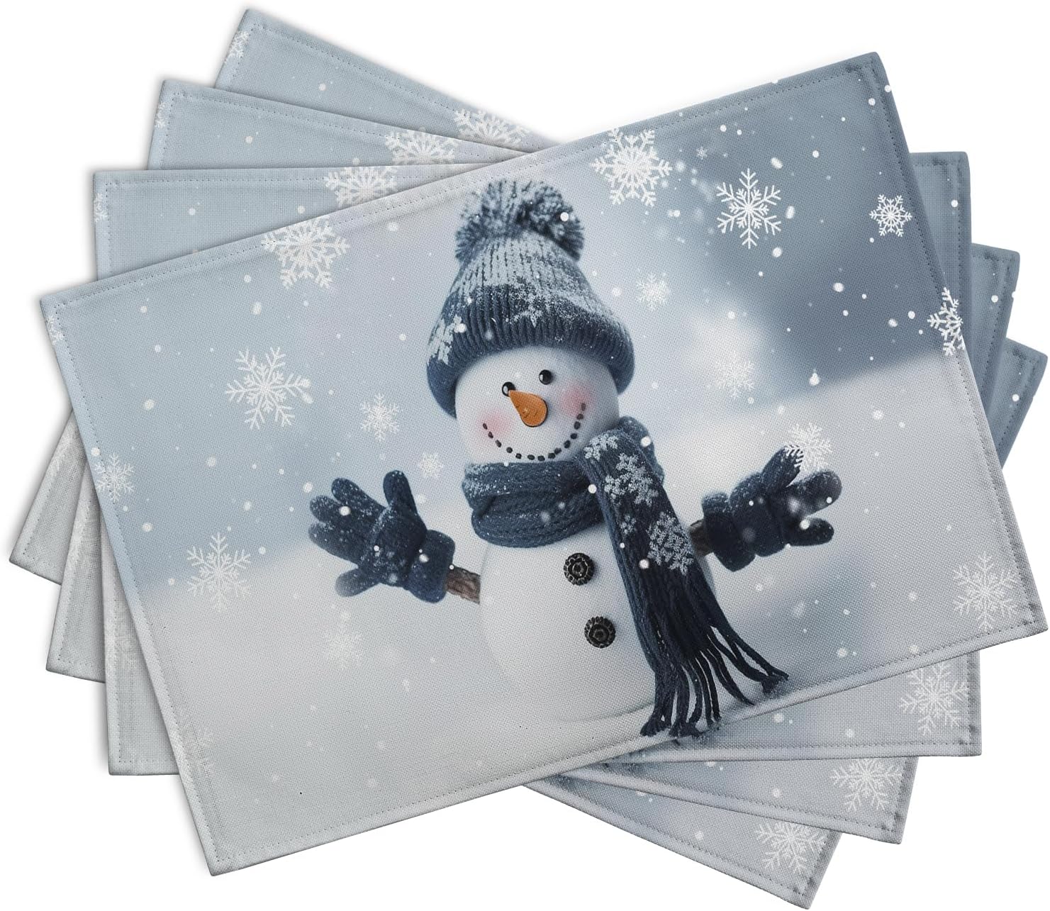 - PERFECTLY SIZE: The snowman dining table mats set of 4, Each blue snowman place mat is 18θ³12 inch (45cmx30cm) that can exactly fits your needs to use in all kinds of situations
