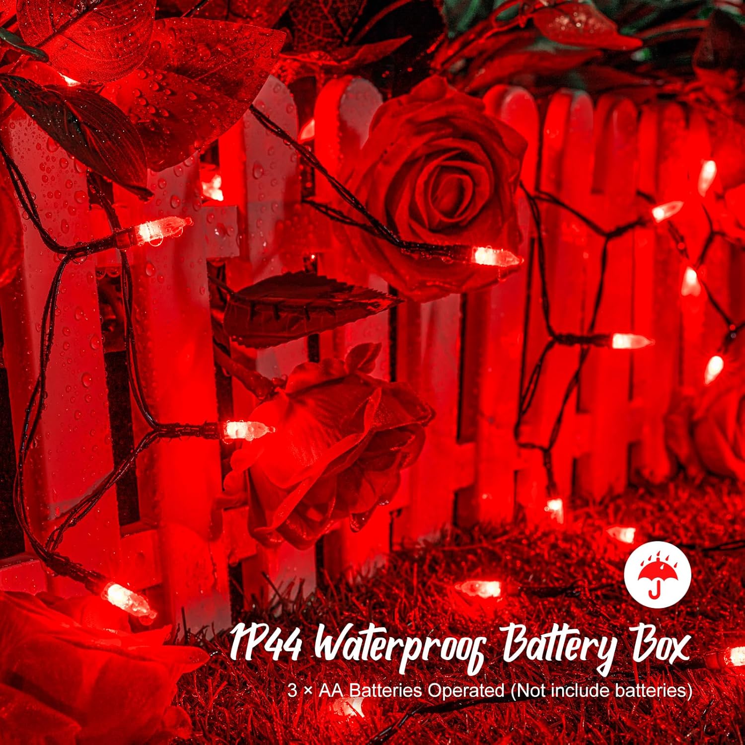 - 【Battery operated】3 AA batteries (Not included) operated, 2 pack 18 feet 50 mini LED strands, 3.94 inch lights spacing with compact water resistant battery control box, energy saving and eco-friendly. Operation time depends on the running time and the quality of installed battery
