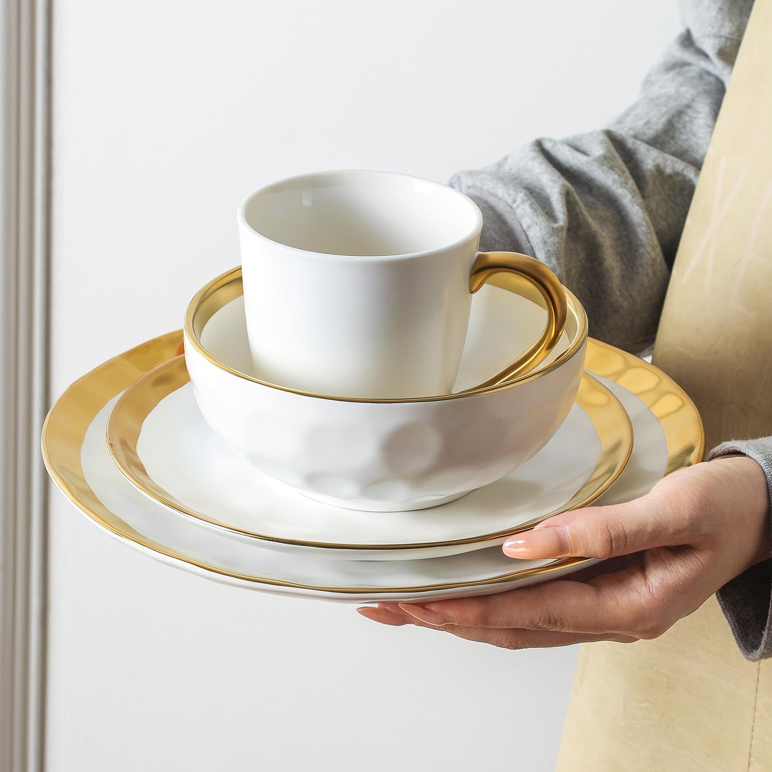 vicrays Coffee Mug Set, 11 Ounce, Set of 6, Ceramic Mug for Men, Women, Unique Glazed Mugs with Handle for Coffee, Tea, Milk, Cocoa, Cereal(White with Golden)