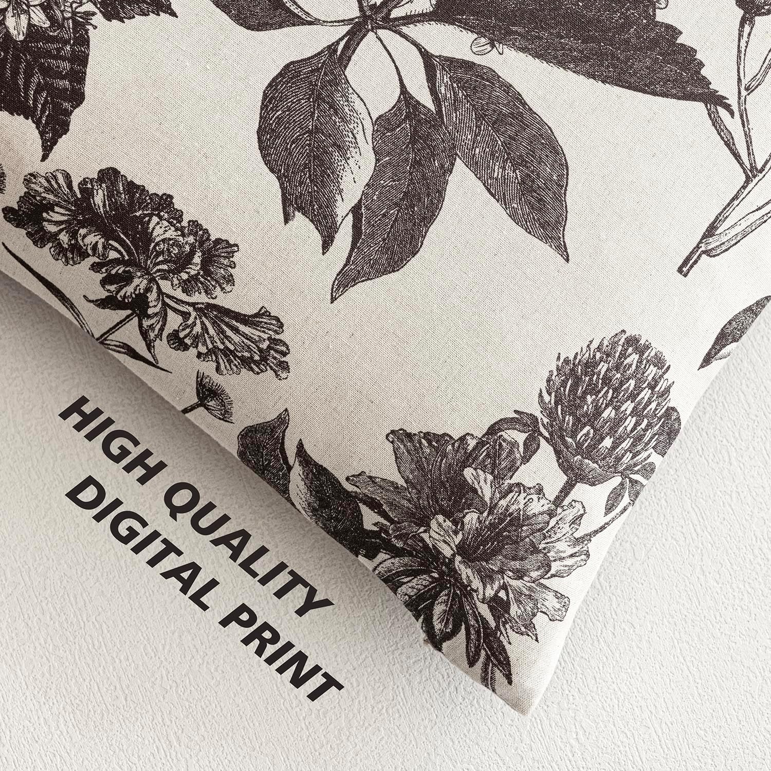 Foindtower Set of 2 Linen Floral Vintage Throw Pillow Covers Neutral Accent Print Decorative Cushion Covers Farmhouse Boho Home Decor for Sofa Chair Couch Bedroom Living Room Outdoor,18×18 Inch,Black