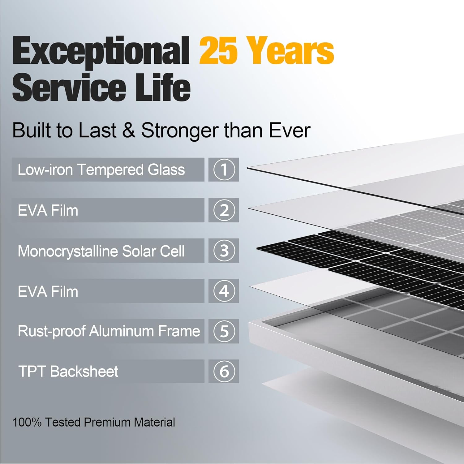 - 【Dependable Customer Support】- This solar panel is backed by a 25-year power output assurance and a 5-year material and workmanship. Additionally, our 24/7 customer service team is available to address any inquiries or issues you might have