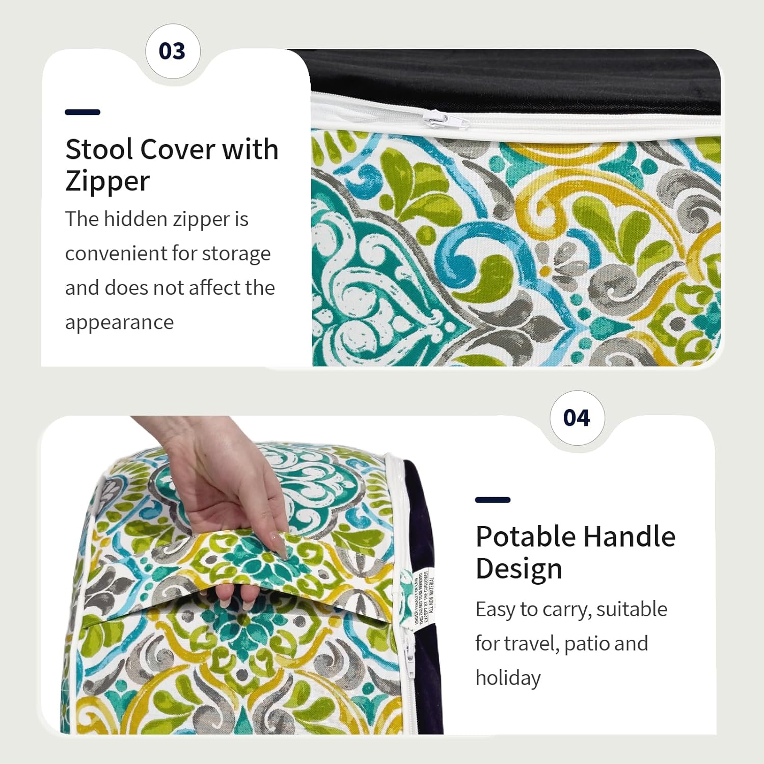 Inflatable Ottoman Stool D21 xH9 for Outdoor/Indoor Use, Water Repellent Patio Foot Rest Stool with Portable Handle,Round Pouf Ottoman Suitable for Garden,Deck and Camping - Damask Green