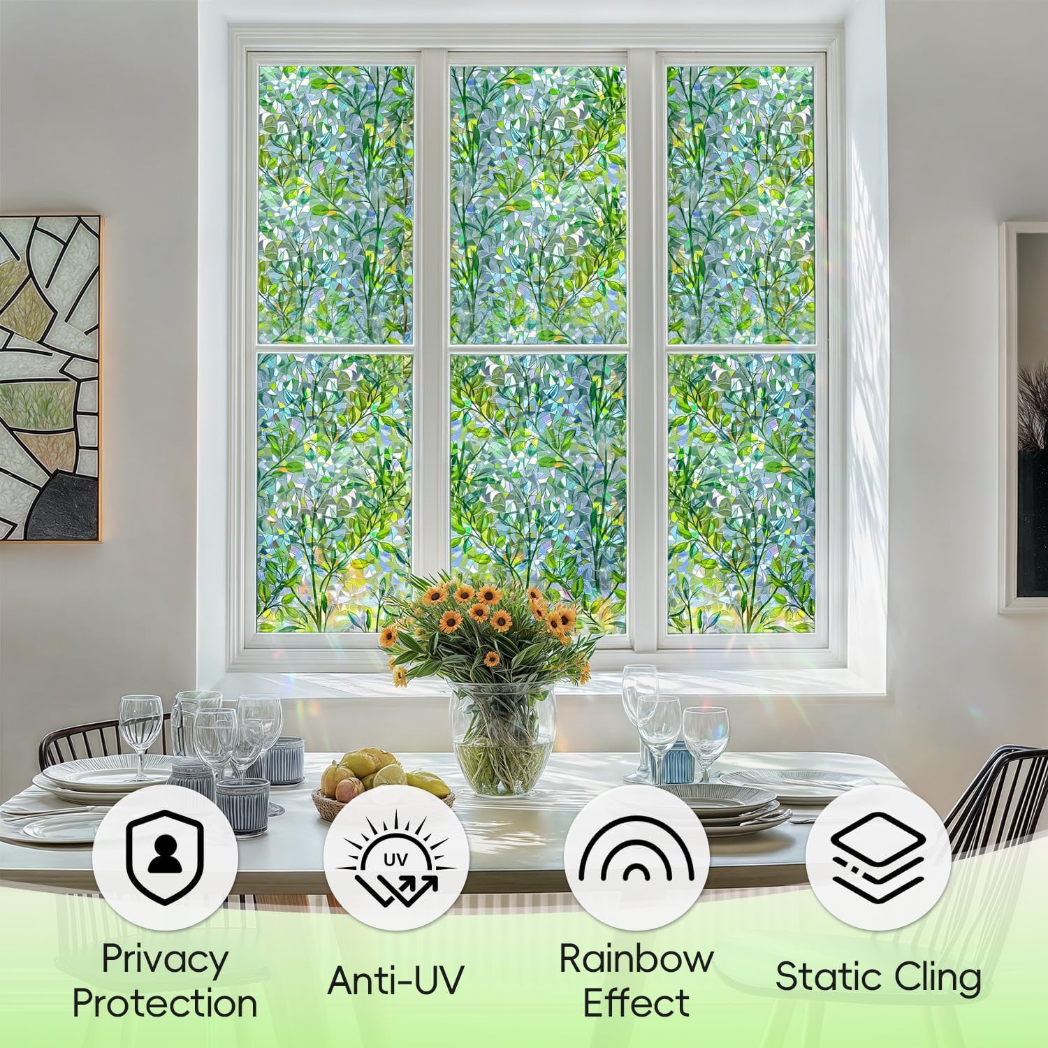 DUOFIRE Window Privacy Film Decorative Stained Glass Window Film Rainbow Foliage Windows Cling Anti UV Non-Adhesive Static Cling Reusable Colorful Windows Decal for Home 35.4×78.7 inch