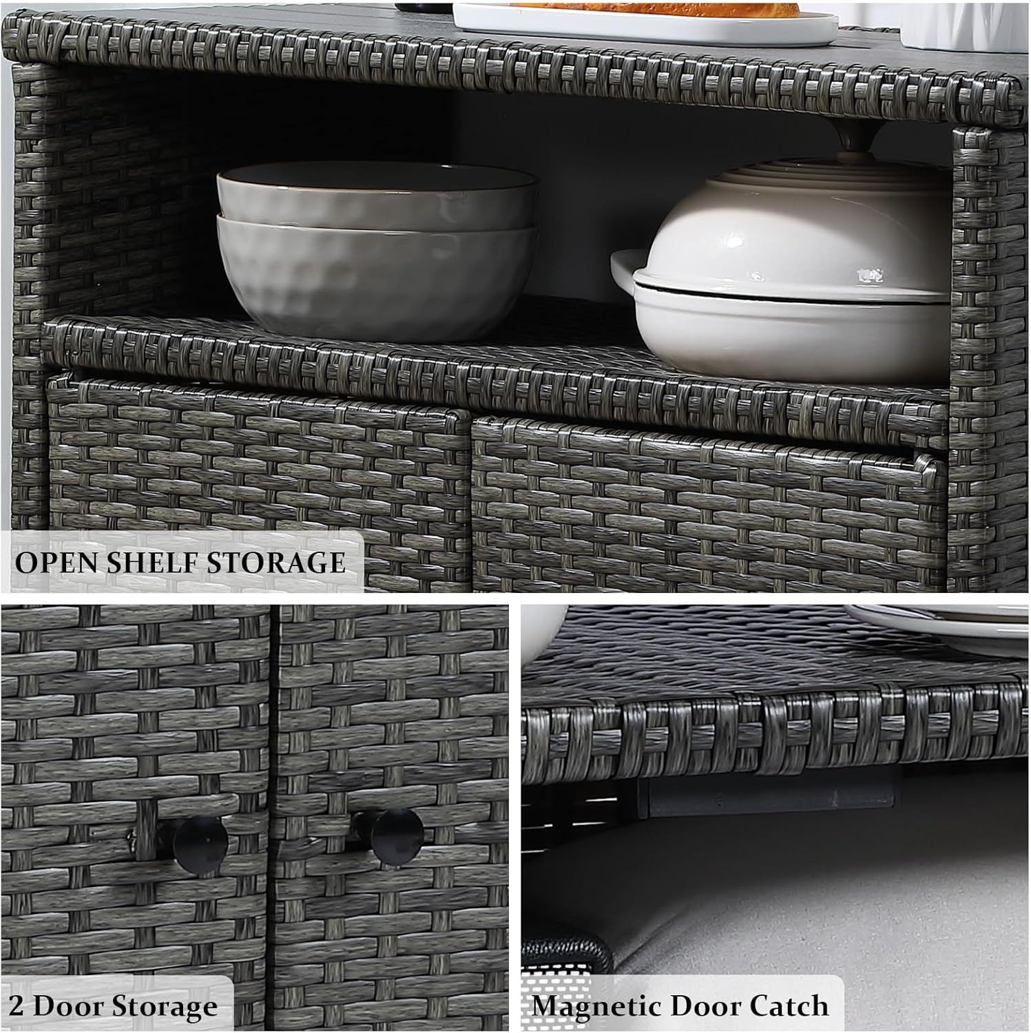 - Rolling Outdoor Storage Cabinet: The buffet cabinet with storage comes with 360Β° casters. Make the movement of the rattan bar table very easy both indoors and outdoors.Perfect for outdoor parties, weddings, patios, sunhouse, kitchen,dining room and vacations