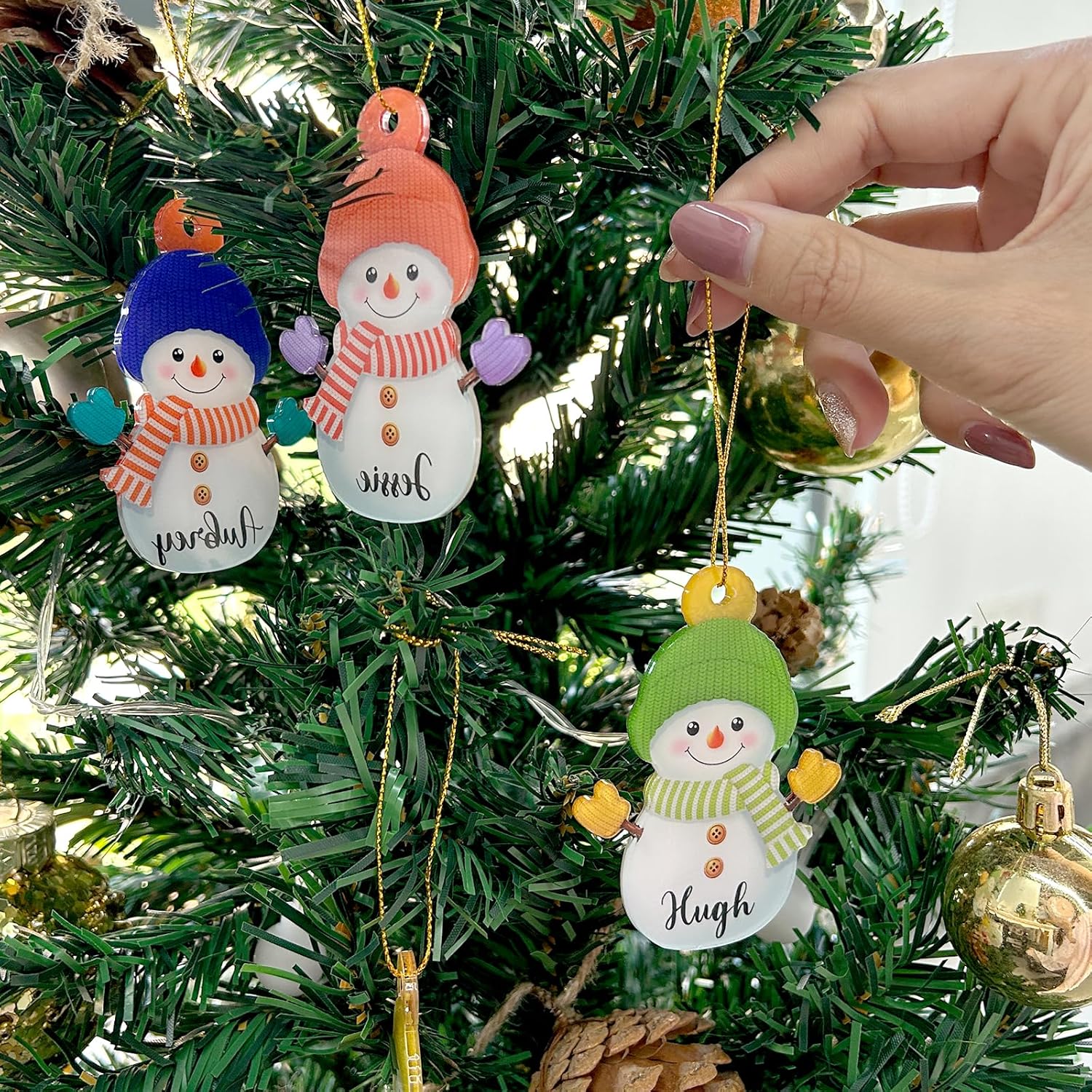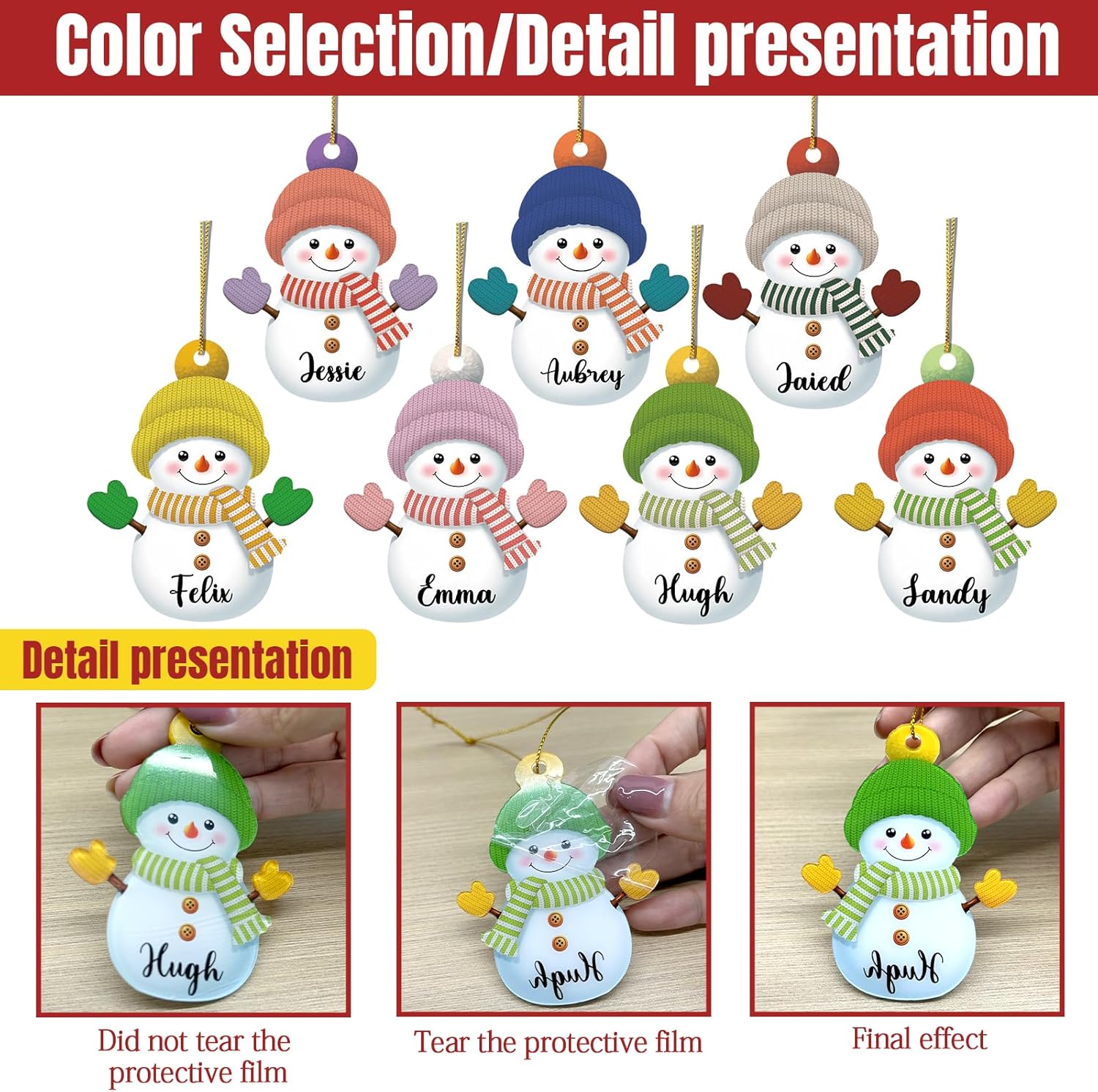 7PCS Personalized Christmas Ornament 2025, Custom Snowman Family Ornament with Name Photo Acrylic for Xmas Tree Decor Customized Hanging Gifts