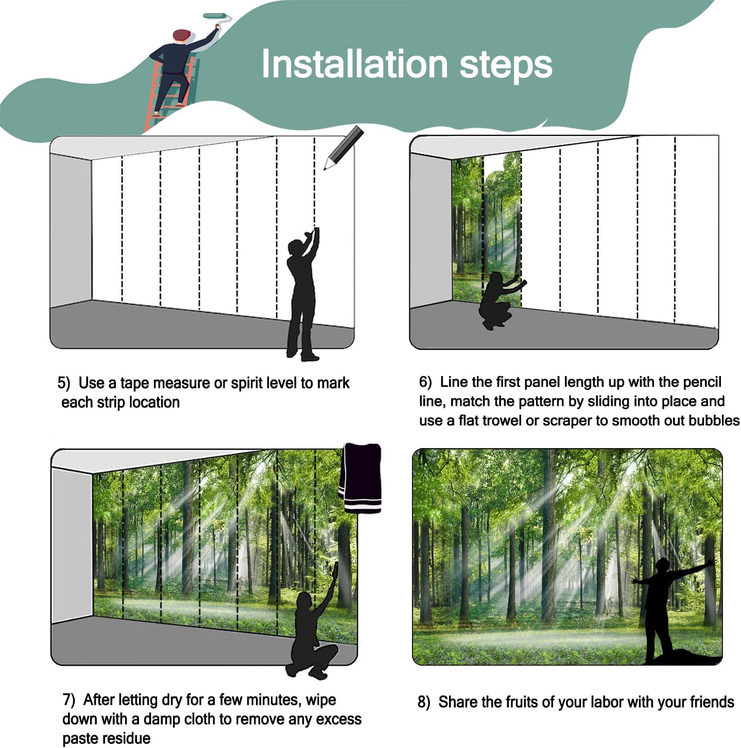 - Mural wallpaper size: 140 "W x 91 "H, divided into 7 sections, each section is labeled with a number underneath, there is no need to overlap the pattern when installing, just install according to the number labeled underneath the panel
