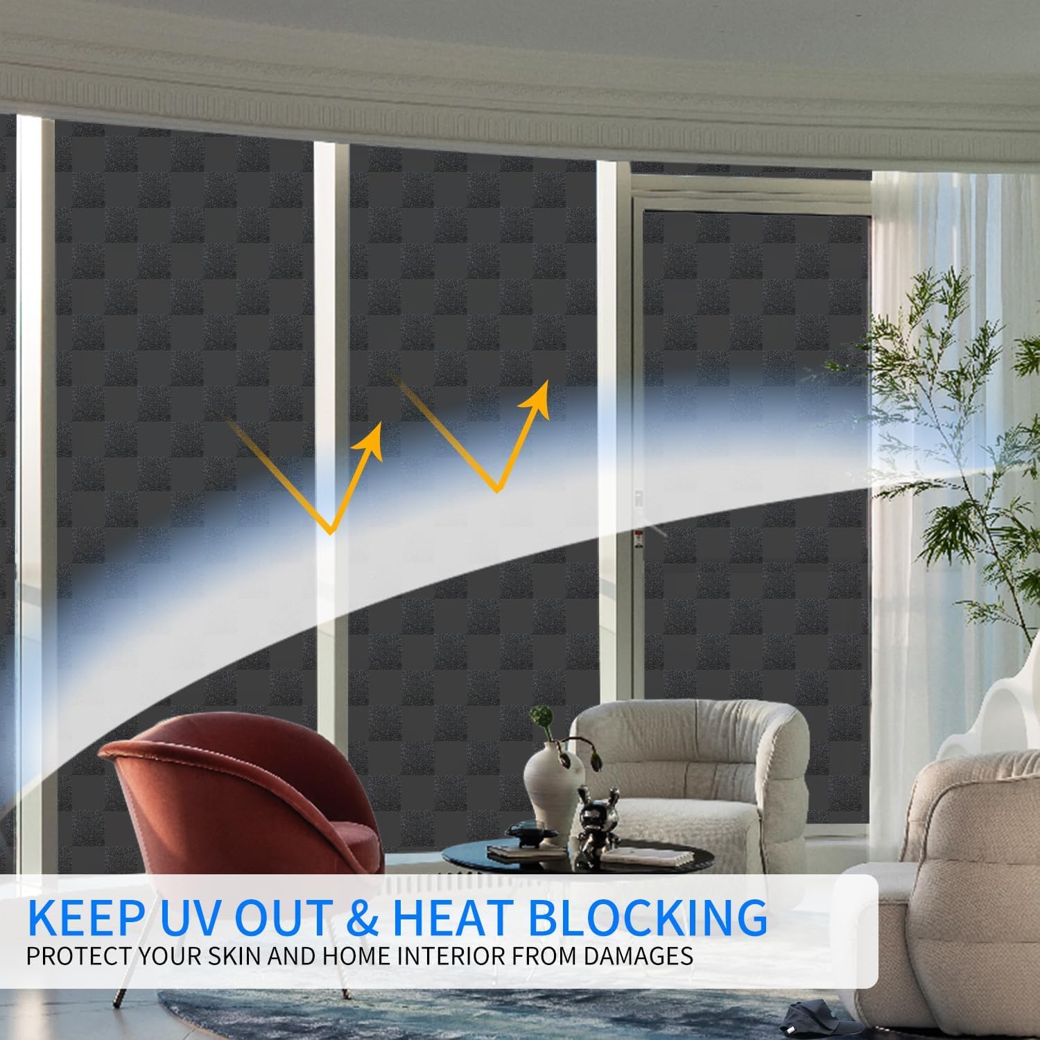 Window Film Privacy Day and Night with Installation Tools, Static Cling Glass Film Ideal for Home Shower Office Glass Door (Black, 35.4 x 196.9 Inch)