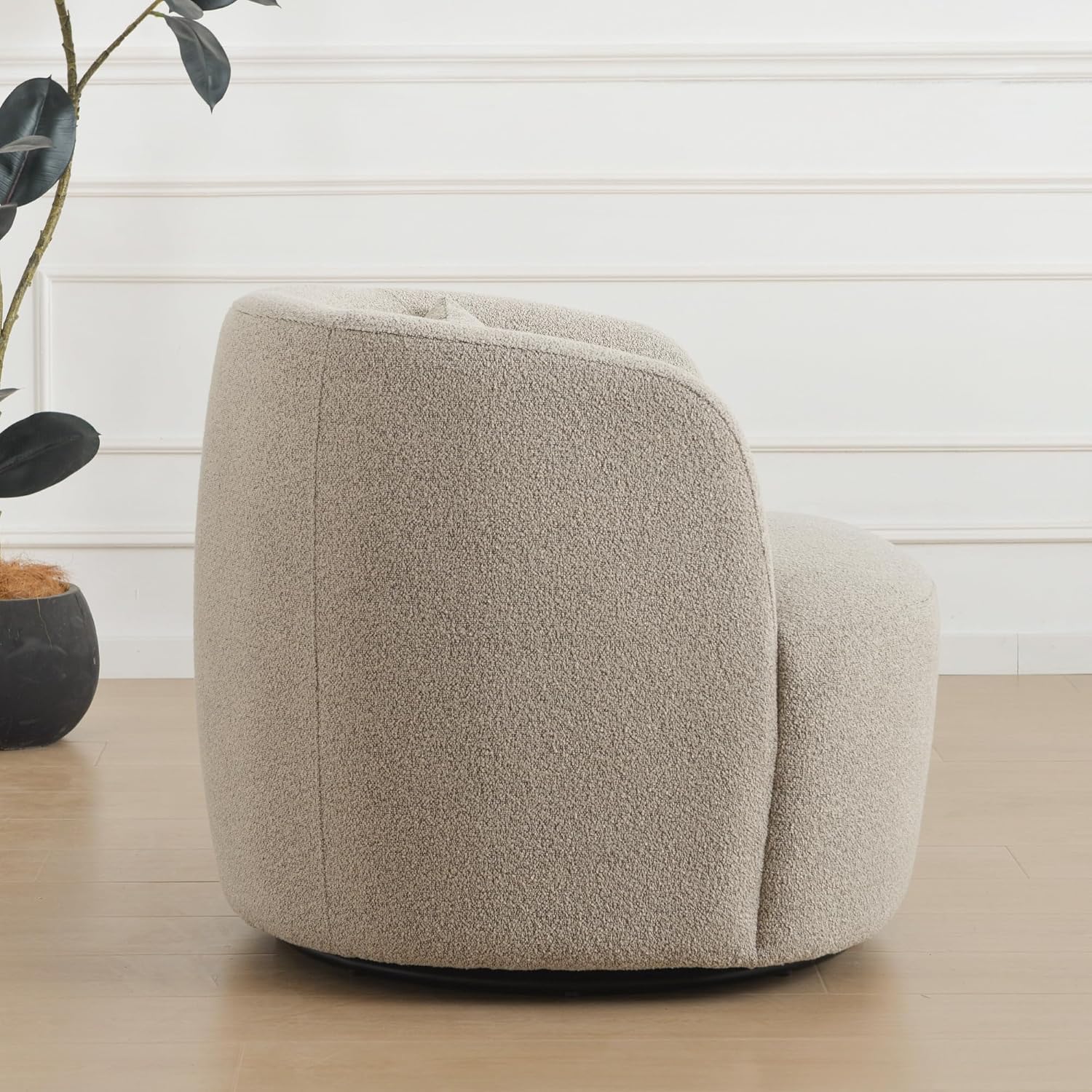 - Spacious and Deep Seating: This standard swivel boucle barrel armchair stands out with a generous width 34-inches, making it one of the largest in accent chairs, with a generous 32.7-inches depth, offers a single-sofa-like experience. Its deep seat design provides ample comfort and space for lounging or stretching out.
