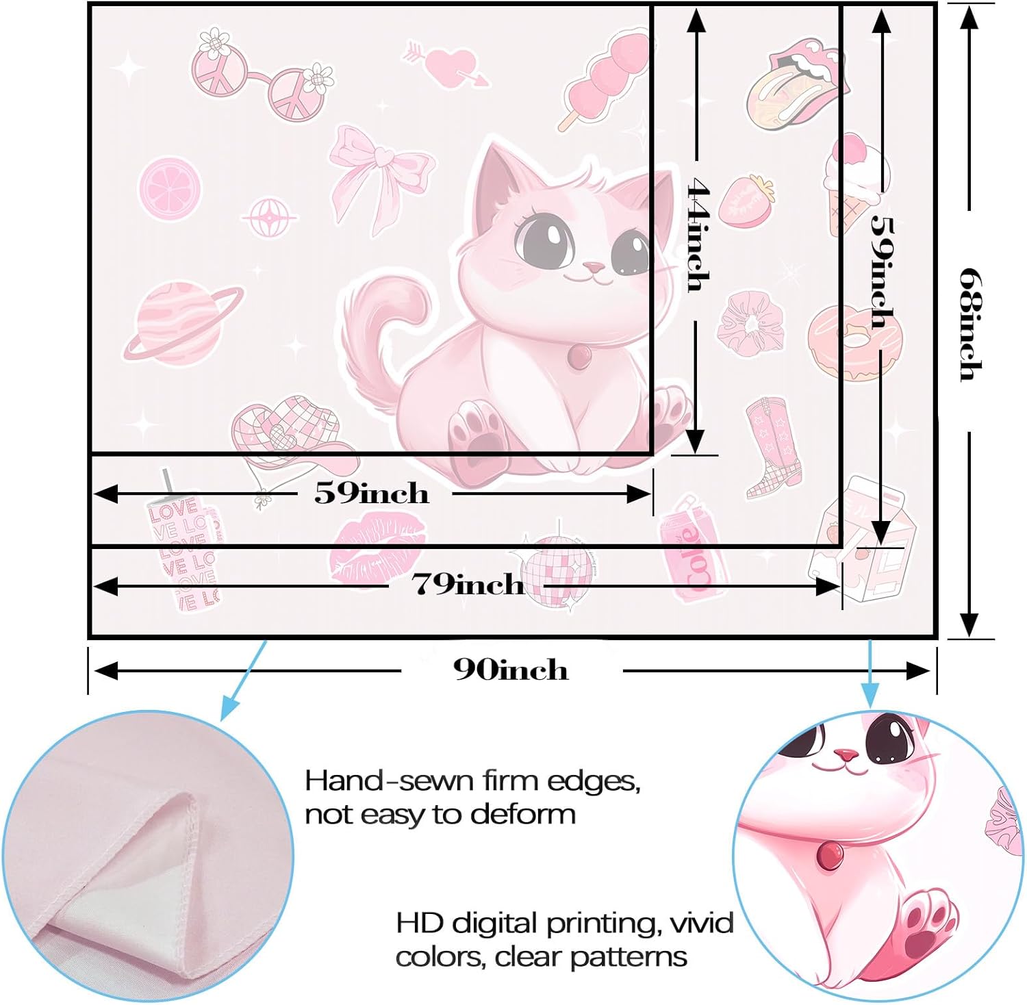 Lunerfex Y2K Tapestry Pink Cat Wall Tapestry, Cute Tapestries for Bedroom Funny Tapestries Wall Hanging for Bedroom Living Room Decor Pink-5 44"x60"