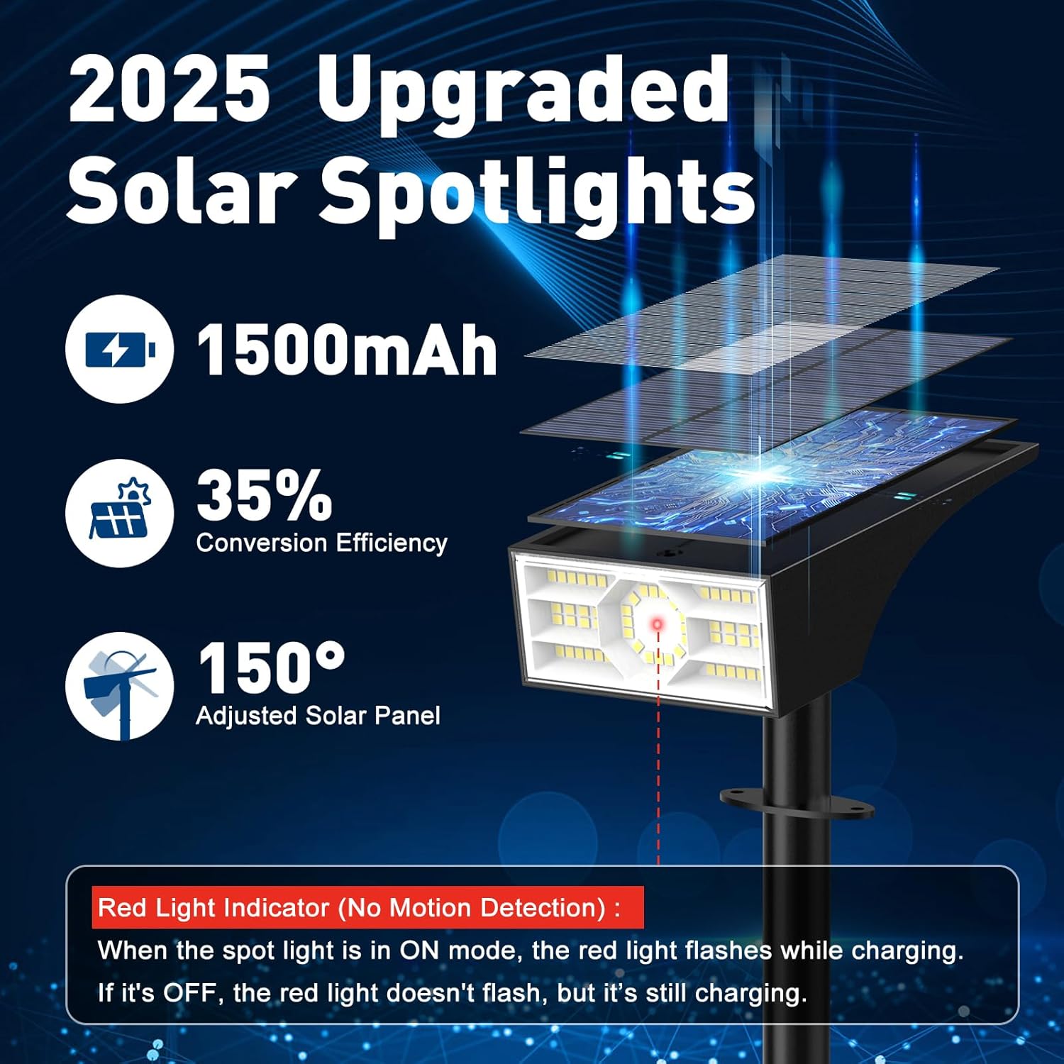 - ใ๐๐จ๐ง๐ -๐๐๐ฌ๐ญ๐ข๐ง๐ ๐๐ฅ๐ฅ๐ฎ๐ฆ๐ข๐ง๐๐ญ๐ข๐จ๐งใ Equipped with 56 LEDs, our solar spotlights create the perfect lighting effect wherever they are placed. The 120ยฐ adjustable head allows you to direct light exactly where you need it. Harness the power of the sun to brighten your garden without high electricity costs. With a maximum brightness of 800 lumens, these solar landscape spotlights provide 8-18 hours of illumination depending on charge timeโlonger, brighter, and more durable than other solar spotlights on the market.