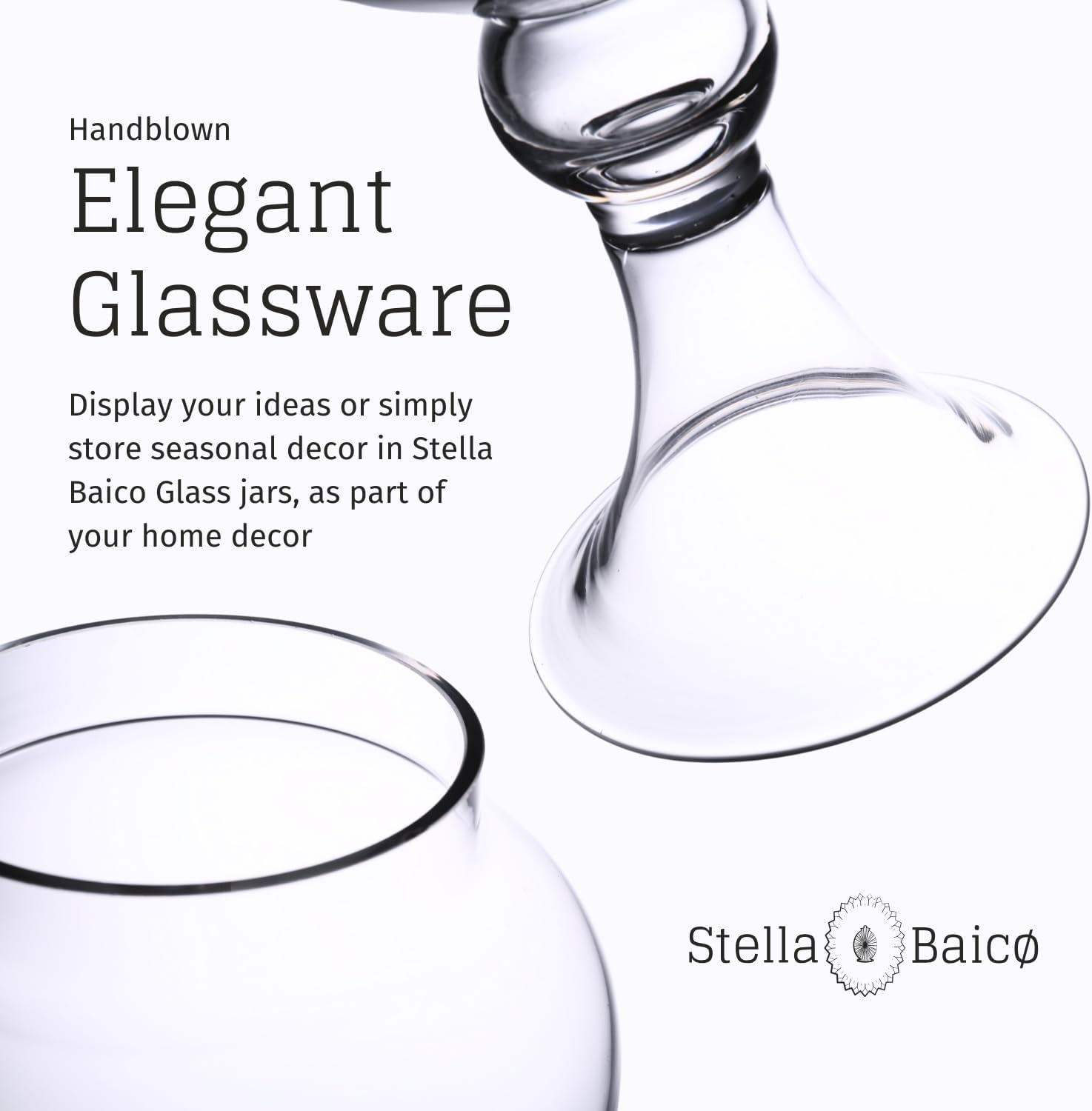 - HAND-BLOWN GLASS: Crafted from durable, high-quality hand-blown clear glass, this apothecary jar features a sleek, crystal-clear design that showcases its contents. Small air bubbles are a natural part of the hand-blown process, adding to its unique charm.
