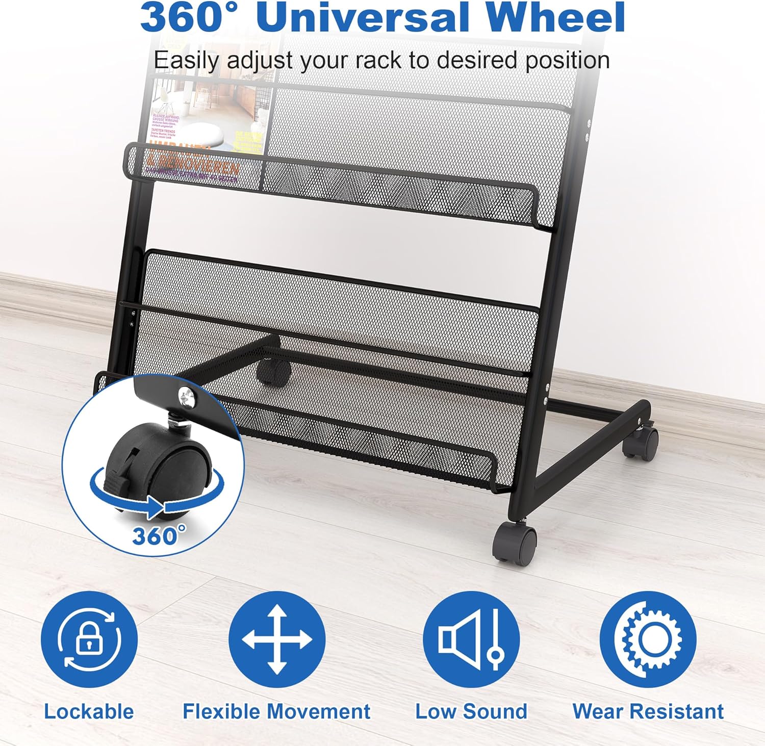 - đăMULTIFUNCTIONAL & EASY TO MOVEă This brochure display stand features four silent wheels, two of the wheels are equipped with braking functionality,easy to move to any place.The top tier allows you to post ads signs,suitable for literature stand for trade shows, exhibition, hotel,hospitals,reception areas, libraries,bank lobbies, event rooms, offices, any other venues requiring information display.