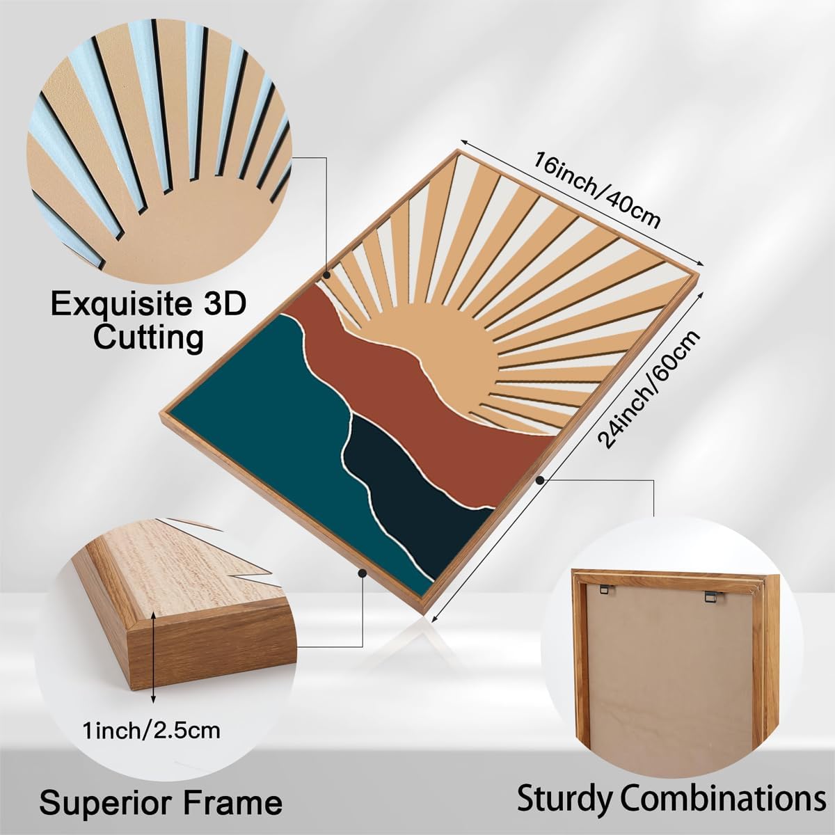 - 【Boho Mountain Framed Wall Art】This abstract mountain painting is inspired by the natural landscape, and the elements of the sun and moon are integrated into the picture, and the variety of colors make the picture more layered. Combined with modern art style, it presents simple and elegant design.