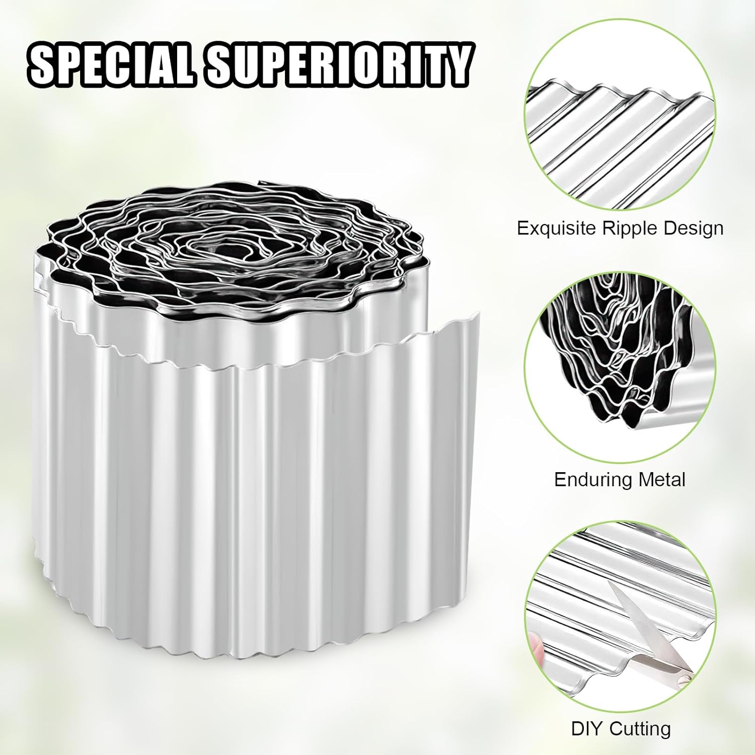 Corrugated Metal Garden Edging - 6 Inch X 10 FT Landscape Edging Border, Flexible Border for Garden Fence, Flower Bed, and Lawn (Silver)