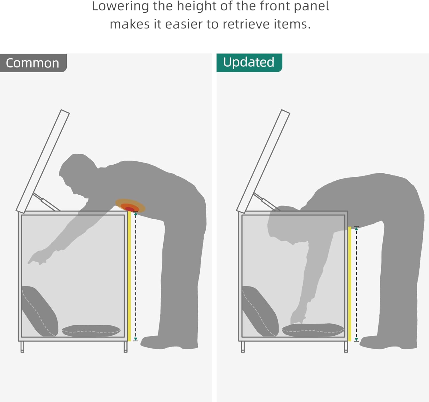 - Swift Assembly & Smooth Operation: Set up in under 20 minutes with effortless assembly. Enjoy a fully functional storage box with smooth pneumatic hinges for easy lid operation.