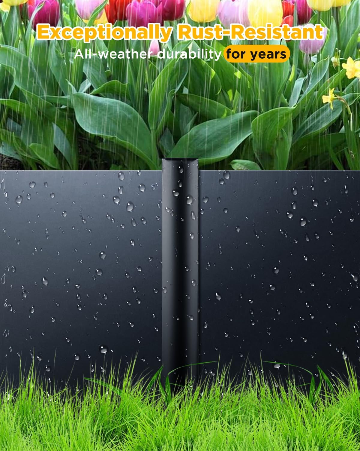 - Robust High Carbon Steel: Our landscape stakes are made from thickened 2mm high carbon steel for enhanced strength and toughness. Even under heavy hammer strikes, our garden stakes resist bending or breaking