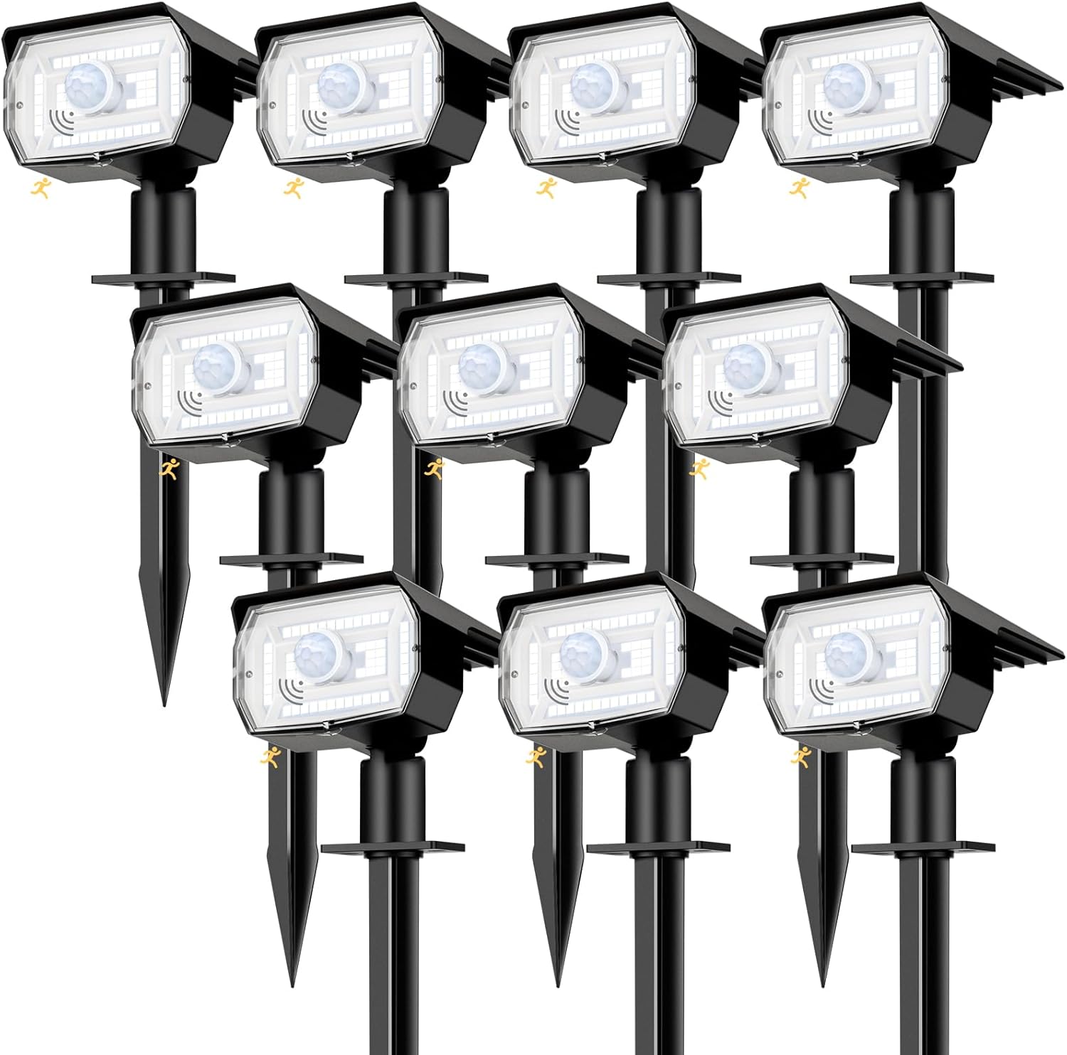 nipify 10 Pack Solar Lights Outdoor Waterproof, 3 Modes Motion Sensor Spot Lights,Solar Powered Spotlights 2-in-1 Auto On/Off Landscape Lighting for Outside Yard Wall Garden, Cool White