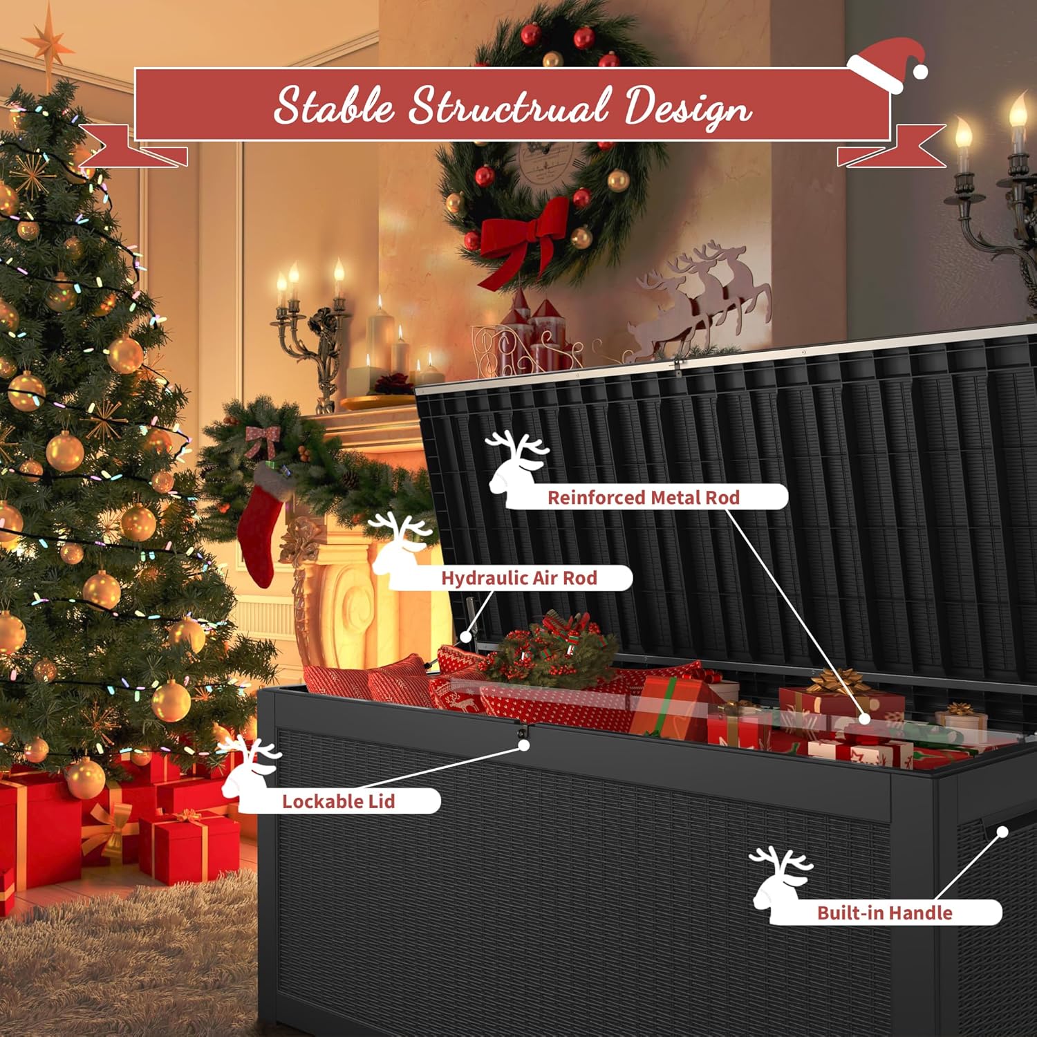 - đȘăAmple Storage Capacity for Any NeedăWith dimensions of 67.7" x 32.2" x 33.6", this deck box offers 260 gallons of storage space. Whether it's gardening tools, pool accessories, cushions, or even as a package delivery box, it keeps your belongings organized and protected.