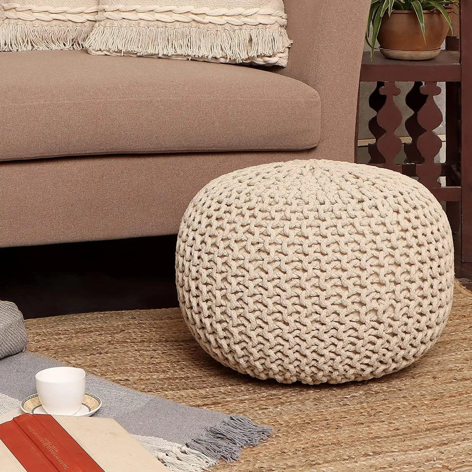 - MAKES A LOVELY, THOUGHTFUL GIFT IDEA: Our knit braided accent cord pouf ottoman is a gift that will keep on giving for many years to come. Surprise a friend or family member with one for a housewarming party, birthday, holiday, and other special occasions. Mix and match for a fun pop of color or choose one that best matches your décor and aesthetic.