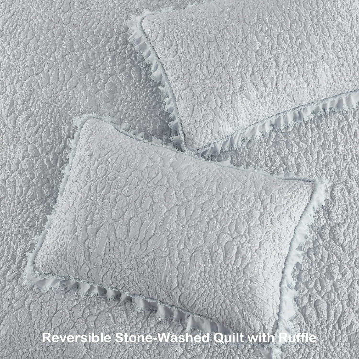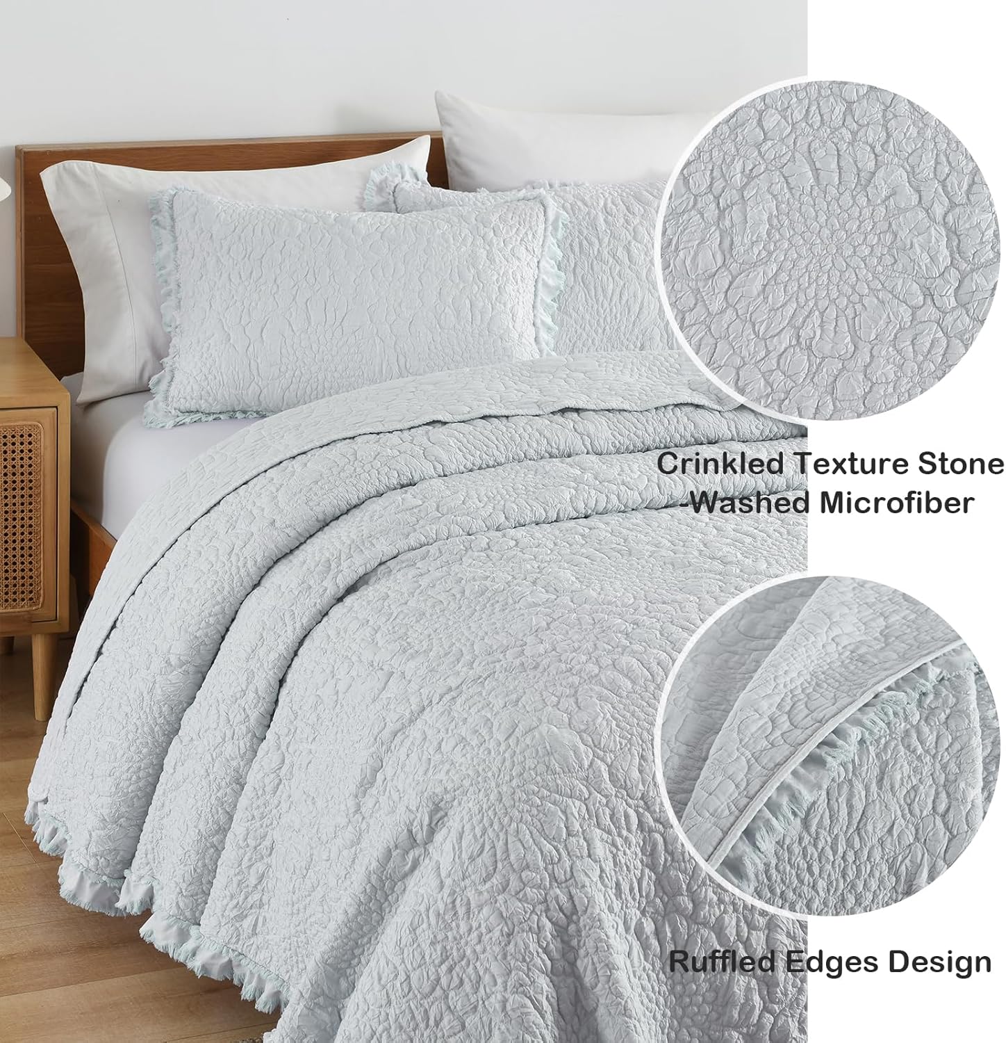 HORIMOTE HOME Light Blue Ruffled Quilt Twin Size, Stone-Washed Microfiber Lightweight Crinkled Farmhouse Rustic Shabby Chic Bedding Set, 2 Pieces Reversible Bedspread with Pillow Sham for All Season