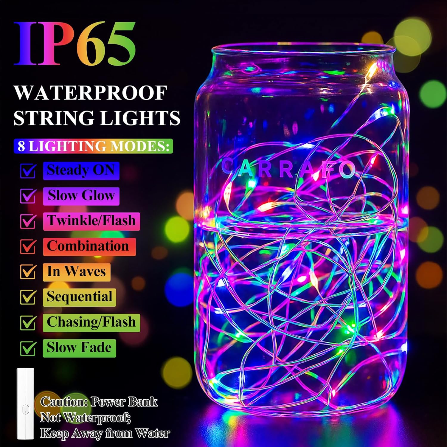 - Tangle-Free & Water-Resistant: Say goodbye to messy wires! These IP65-rated mini LED fairy lights battery operated feature tangle-free reinforced wiring that withstands humidity, perfect for mason jars and indoor plants. Built to last, they outshine ordinary battery string lights. Note: the included power bank is not waterproof—keep it dry for safe use