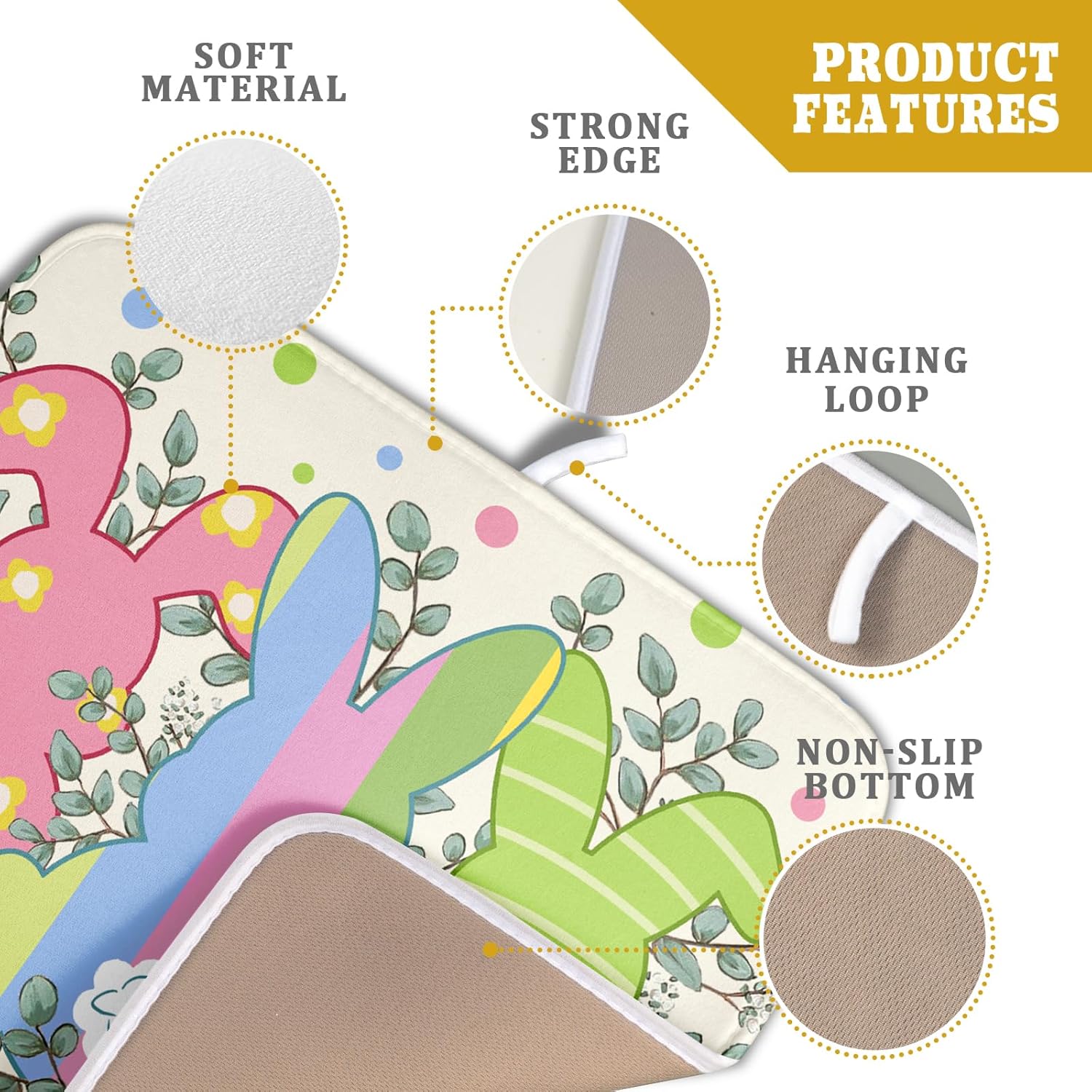 Easter Dish Drying Mat for Kitchen Counter Cute Bunny Rabbit Festival Seasonal Absorbent Reversible Microfiber Kitchen Countertop Protector Dishes Pad Large 16x18 inch