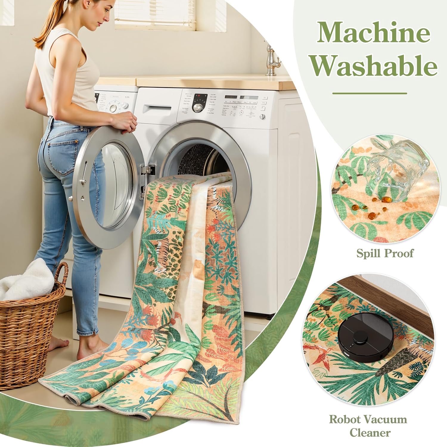LIVEBOX Boho 8x10 Area Rugs for Living Room, Washable Soft Jungle Animal Print Rug for Bedroom, Farmhouse Non Slip Rug Floor Carpet, Forest Dining Room Rugs for Under Table