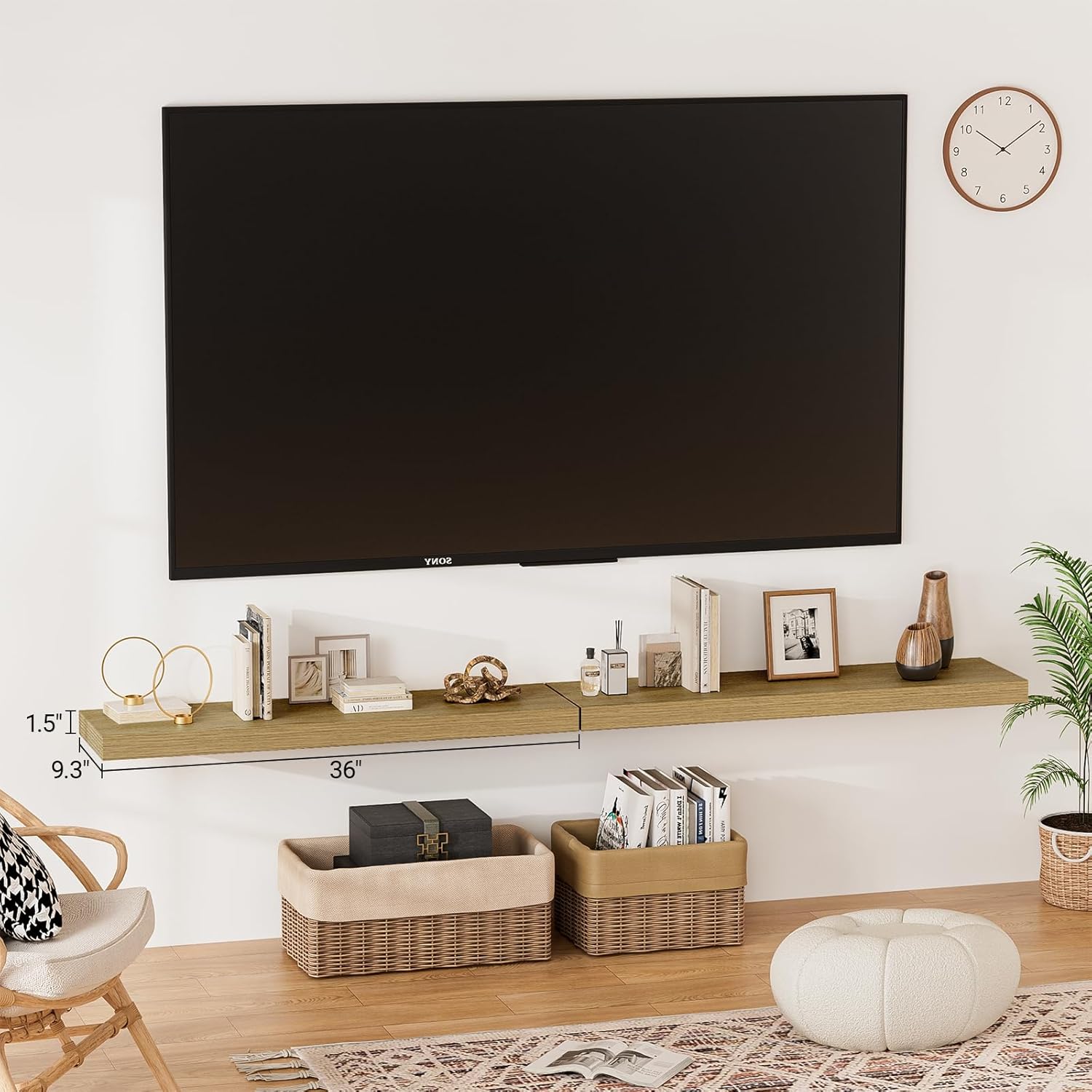 - ăLonger DesignăOur pretty 36 inch wall shelves are 36"W x 9.3"D x 1.5"H.Our floating shelves oak is longer than traditional designs and can hold more items.The 36 inch floating shelf optimize wall space,helping organize essentials without taking up floor space in your home.