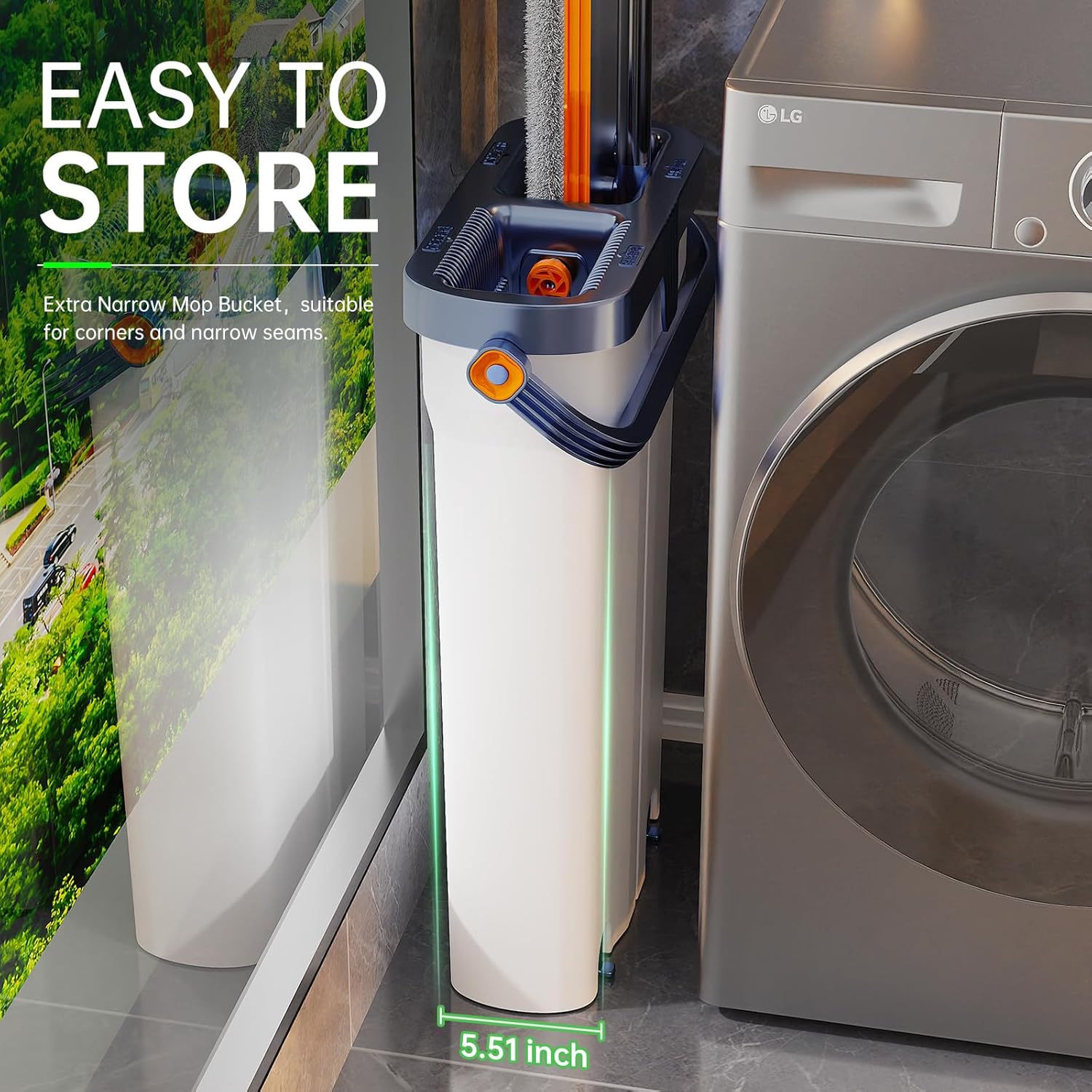 - Space-Saving Design & Additional Features – The narrow, compact mop bucket fits into tight spaces like behind doors or in narrow gaps. Additionally, the mop features two extra holes for cleaning solutions and is compatible with paper towels or thin pads. The automatic rebound mop head and soft scraper make cleaning in bathrooms or other wet areas easy. This mop and bucket set is perfect for any home looking for space-saving mop systems.