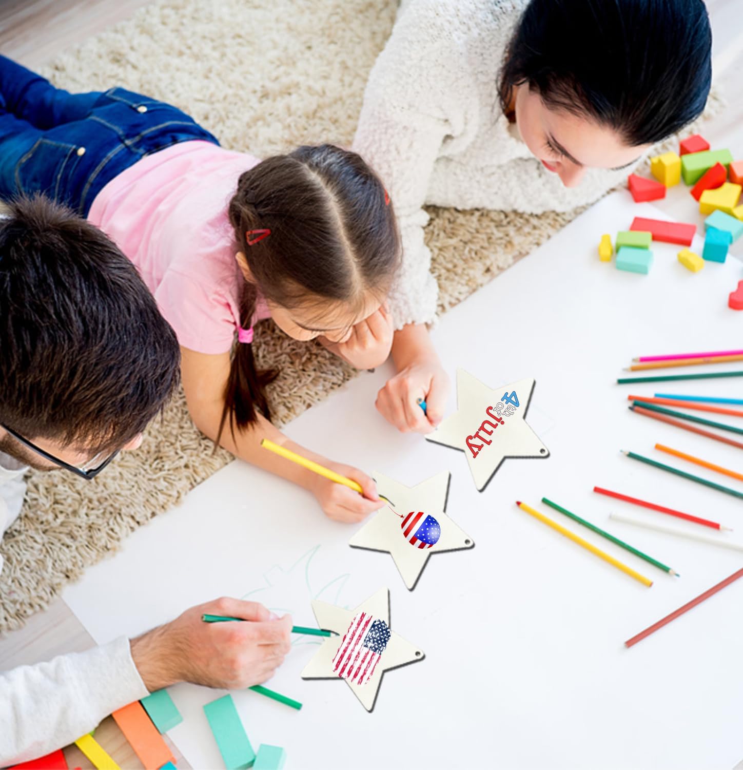 - ★【WIDE APPLICATION】:Our rustic wooden ornaments will provide you with delight and comfort. Traditional Holiday with interesting DIY Crafts indicate a festival way to add visual interest to the seasonal scene and vibrant colors enliven Christmas/Anniversaries/Weddings/Special Day decoration. Perfect for crafting unique wooden stars ornaments, making Independence Day crafts, and creating cherished memories