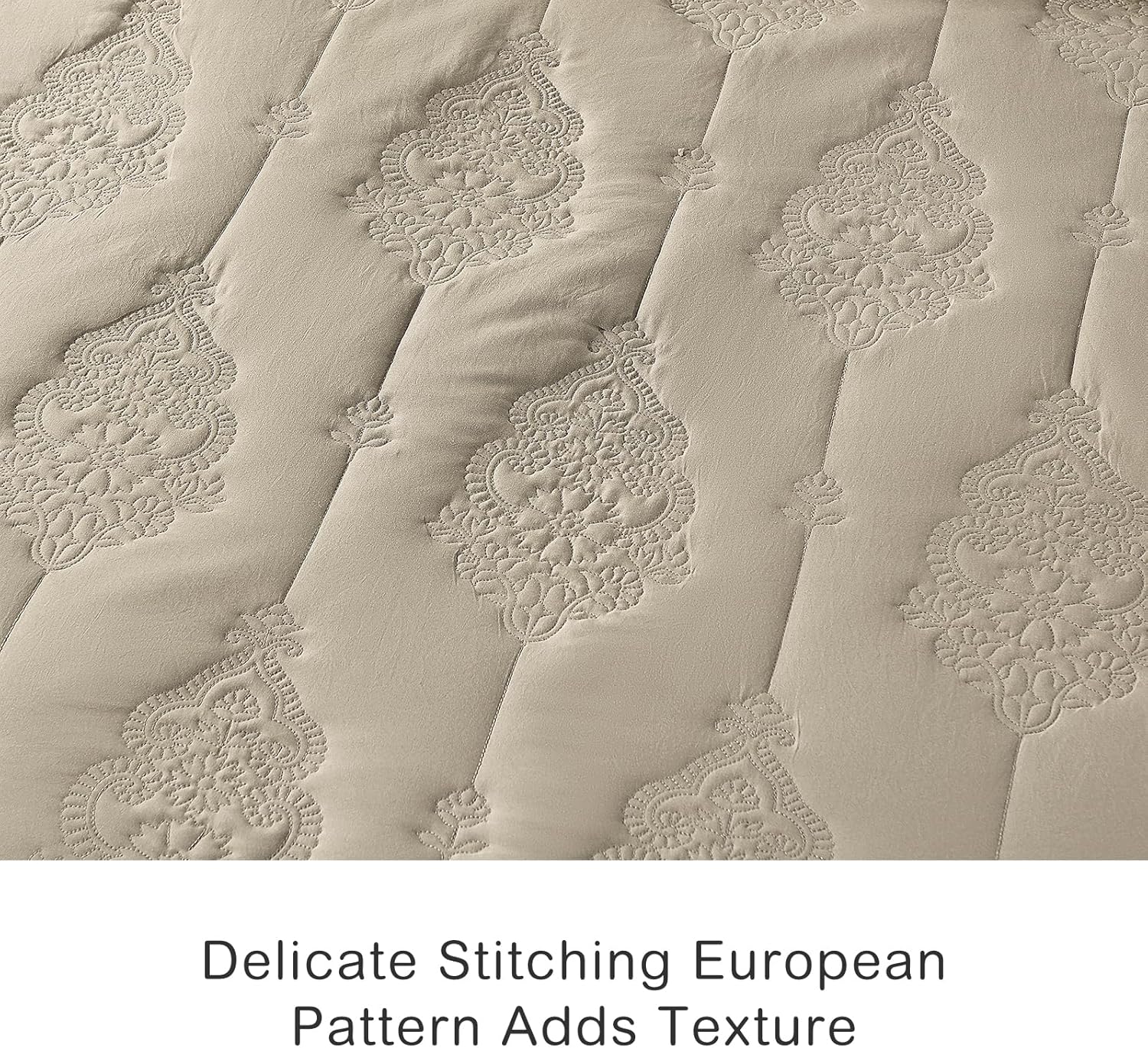 HORIMOTE HOME Khaki Quilt King Size Floral Quilt Bedspread Lightweight Soft Pre-Washed Microfiber Bedcover, 3 Pieces Thin Comforter Bed Cover Bedding Set for All Season