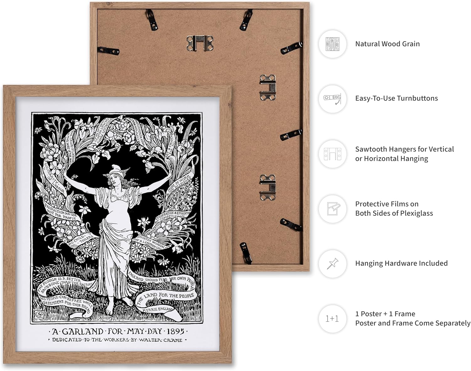 Poster Master Vintage Walter Crane Poster - Retro A Garland for May Day Print - Socialist Art - Gift for Him, Her, Men, Women - Wall Decor for Home, Office, Living Room, 16x20 Beige Framed