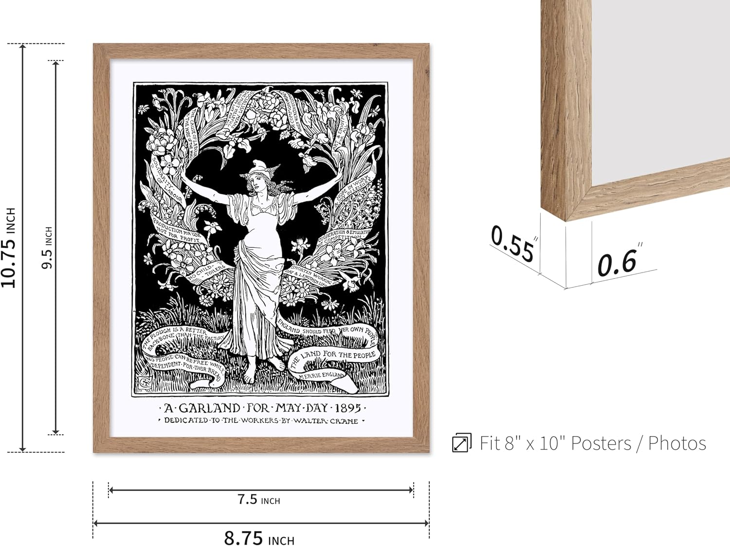 Poster Master Vintage Walter Crane Poster - Retro A Garland for May Day Print - Socialist Art - Gift for Him, Her, Men, Women - Wall Decor for Home, Office, Living Room, 8x10 Beige Framed