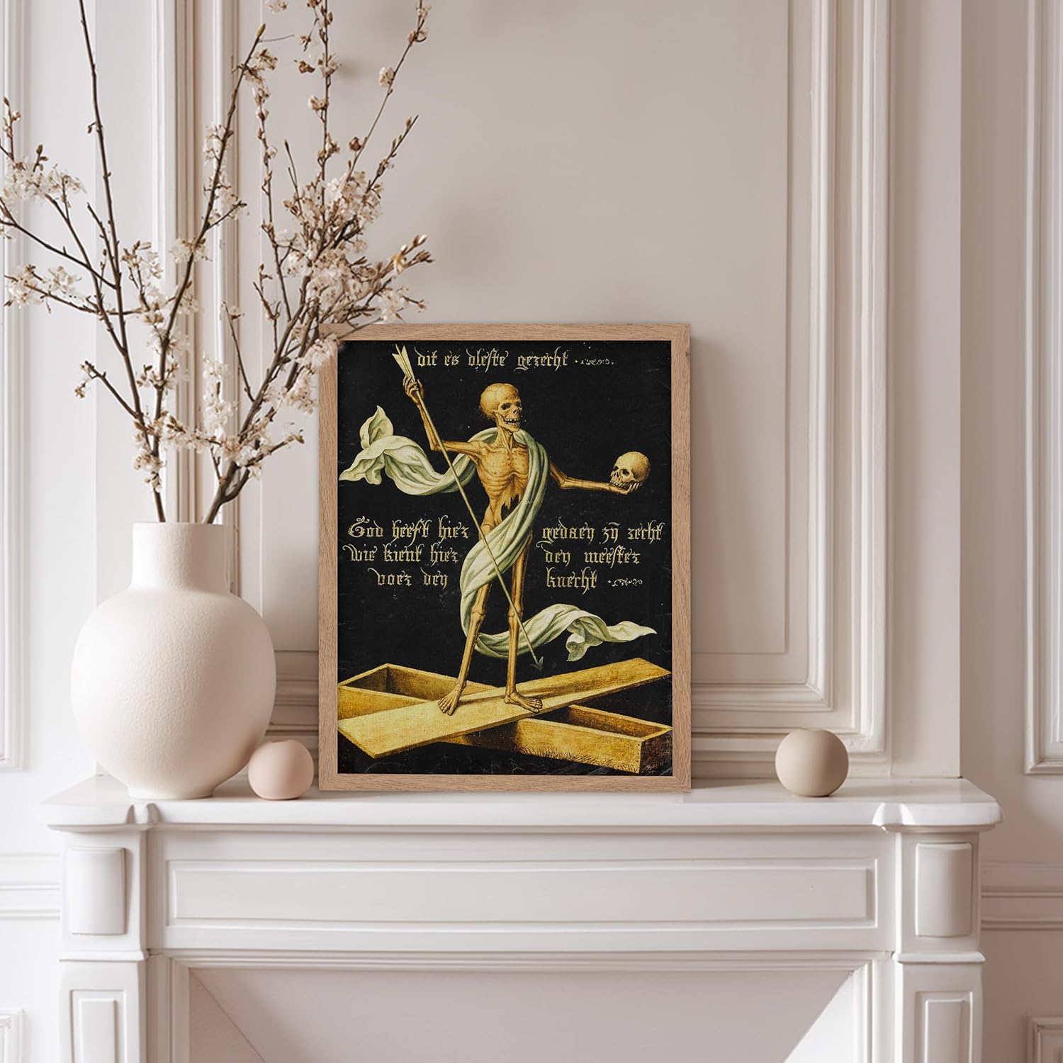 Poster Master Vintage Medieval Poster - Retro Gothic Print - Gift for Artist, Friend - Allegory of Life and Death, Skeleton, Dark, Skull - Wall Decor for Home, Living Room, 11x14 Beige Framed