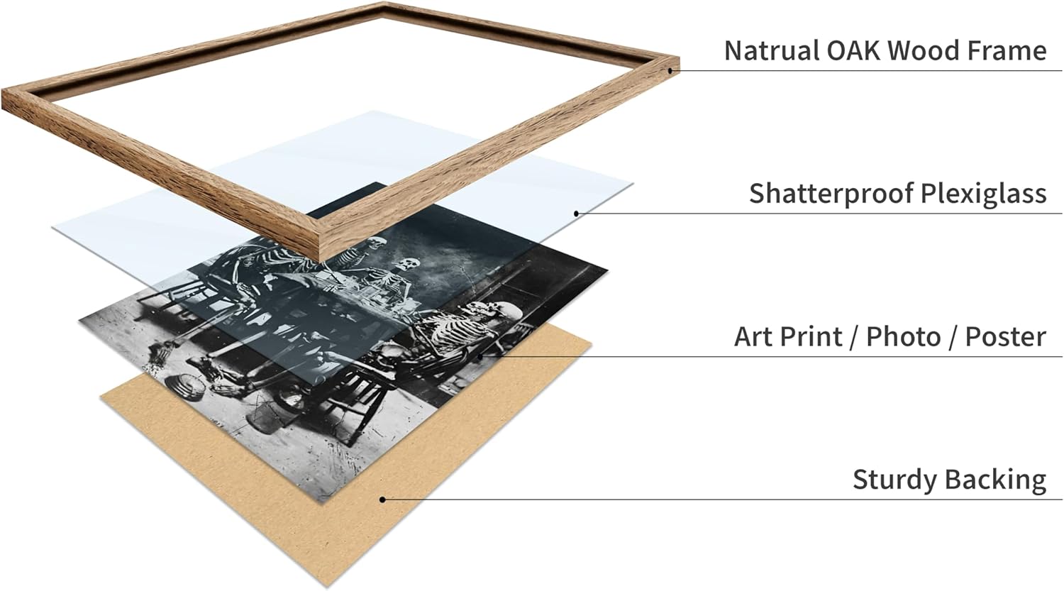 Poster Master Vintage Photograph Poster - Retro Daguerreotype Print - Gift for Artist, Friend - Skeletons Smoking at Table, Dinner Party, Goth - Wall Decor for Home, Dorm, 8x10 Beige Framed