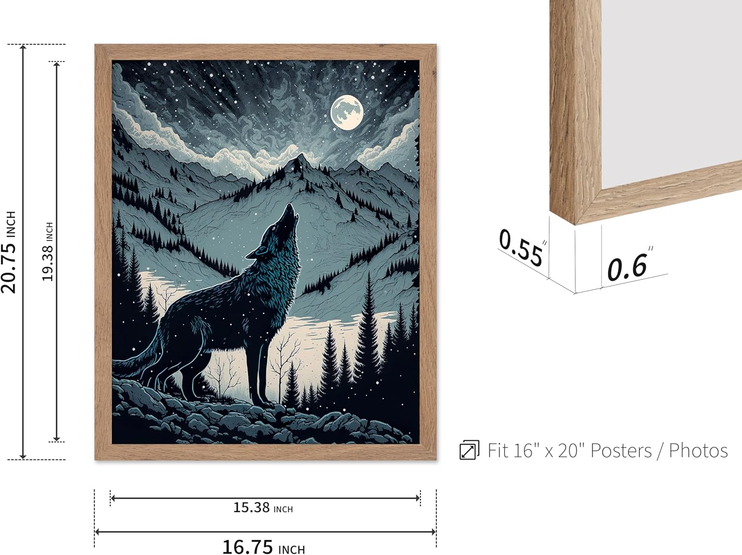 Poster Master Vintage Illustration Poster - Retro Animal Print - Gift for Artist, Friend - Wolf Howling at the Moon, Mountain, Snow, Landscape - Wall Decor for Home, Office, 16x20 Beige Framed