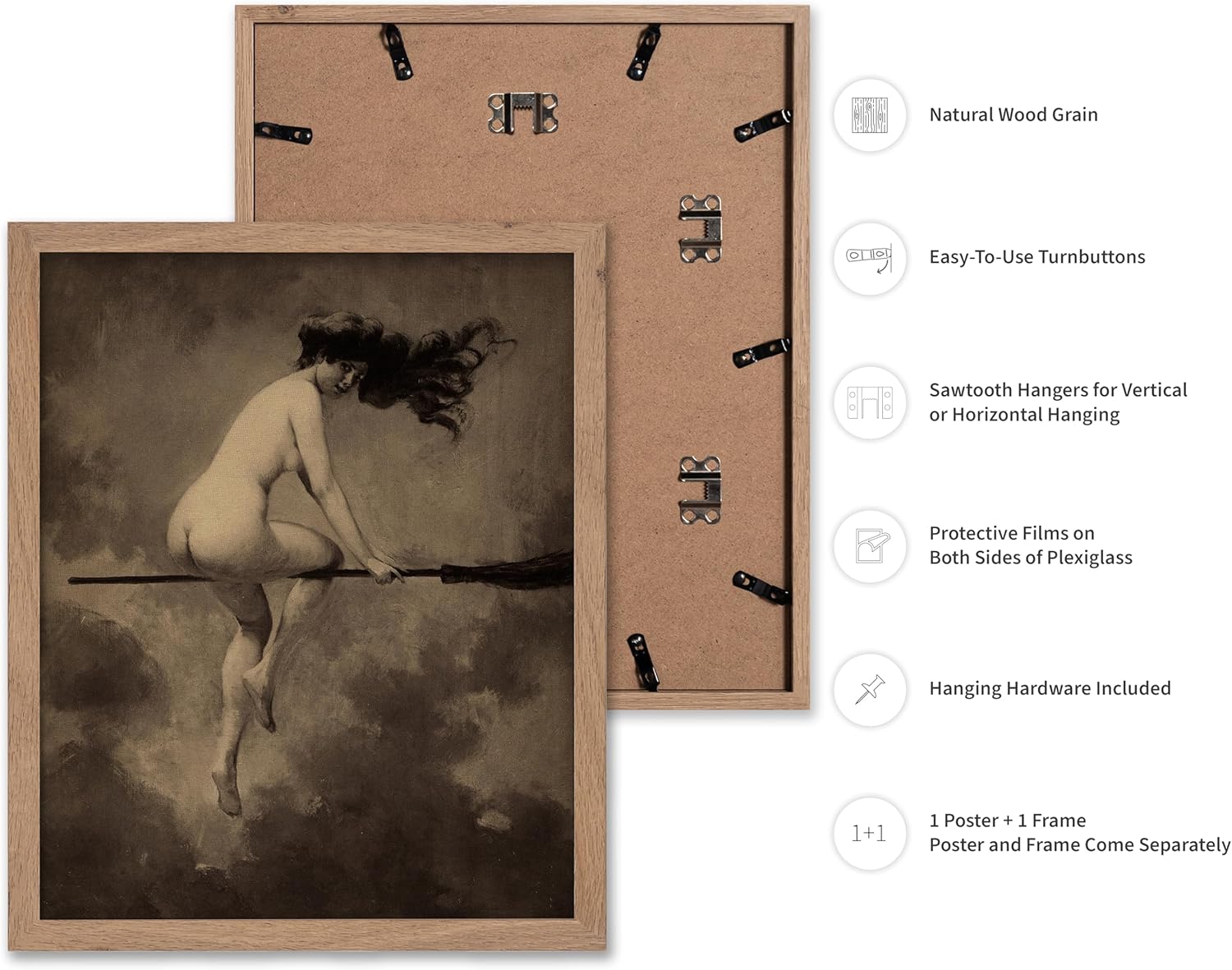 Poster Master Vintage Albert Joseph Penot Poster - Retro Halloween Print - Gift for Artist, Friend - Departure for the Sabbath, Naked Witch on Broom - Wall Decor for Bedroom, 8x10 Beige Framed