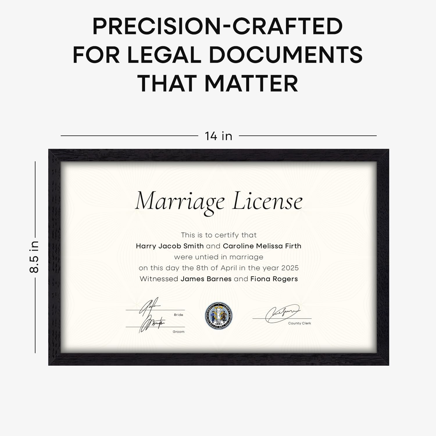 Homeforia 8.5x14 Marriage License Frame Black, High End Oak 8.5x14 Certificate Black Wood Frames, 8.5by14 Wooden Frame for Wall & Tabletop, 8.5 by 14 Picture Frames, Tempered Glass, Wall Kit, Set of 1