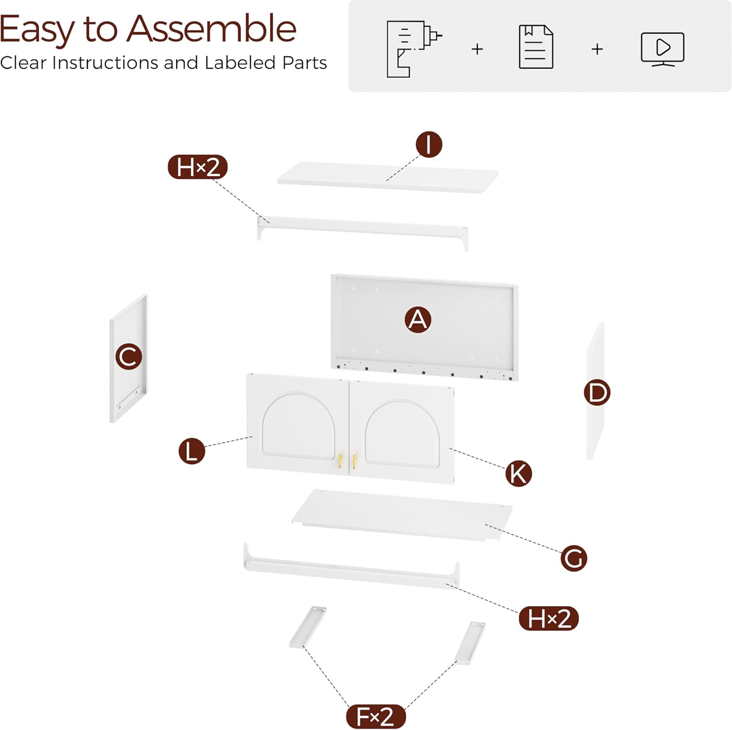 - High Quality Material: The bathroom cabinet wall mount is made of thickened cold-rolled steel, which is strong and not easy to deform. The white wall storage cabinet is treated with environmentally friendly powder coating, which has strong moisture-proof and rust-proof ability and is easy to clean to ensure your long-term use.