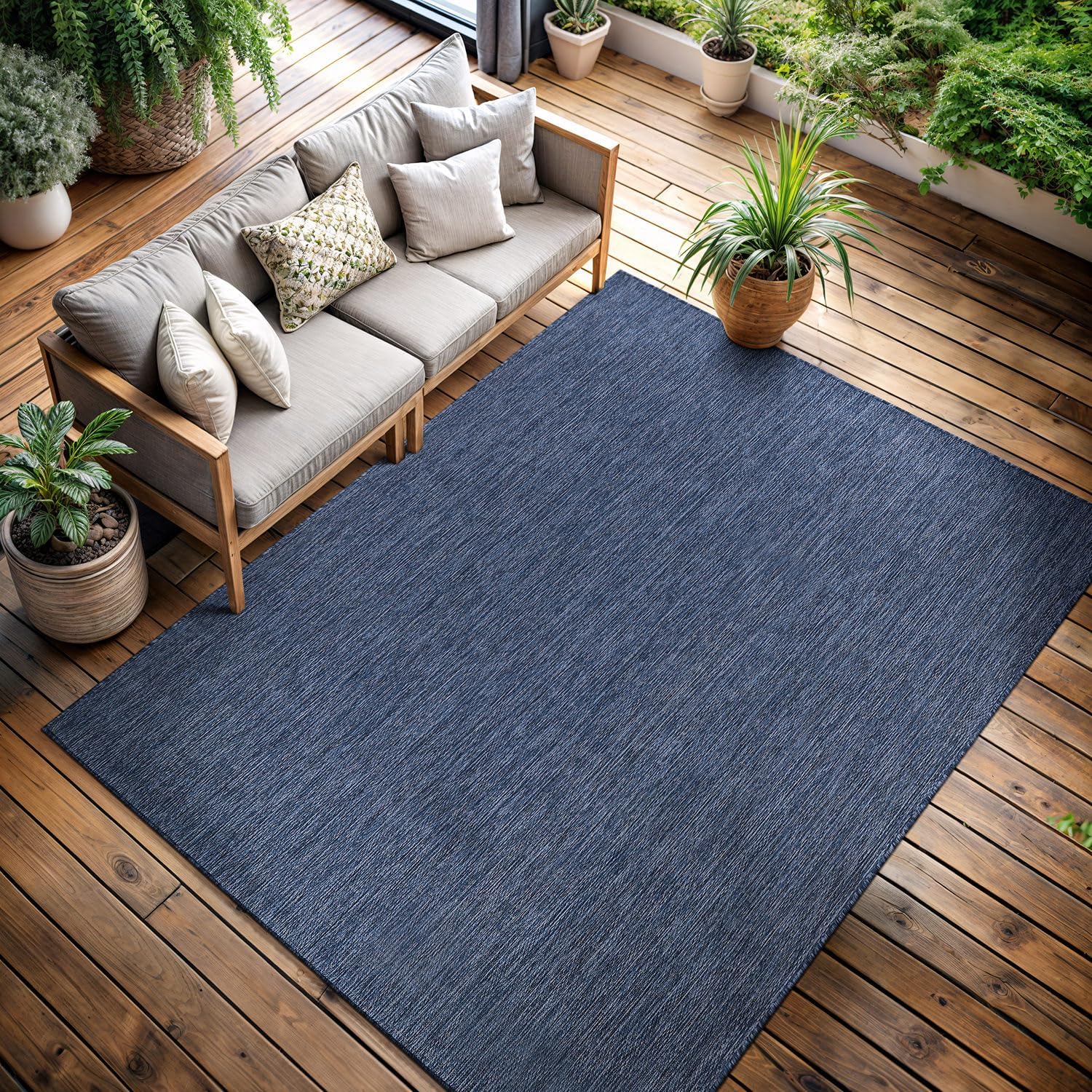 CAMILSON Outdoor Rug 8x10 Modern Area Rugs for Indoor and Outdoor Patios and Porches - Waterproof, Washable, Non-Shedding, Easy-to-Clean Outside Carpet (8 x 10, Solid - Navy Blue)