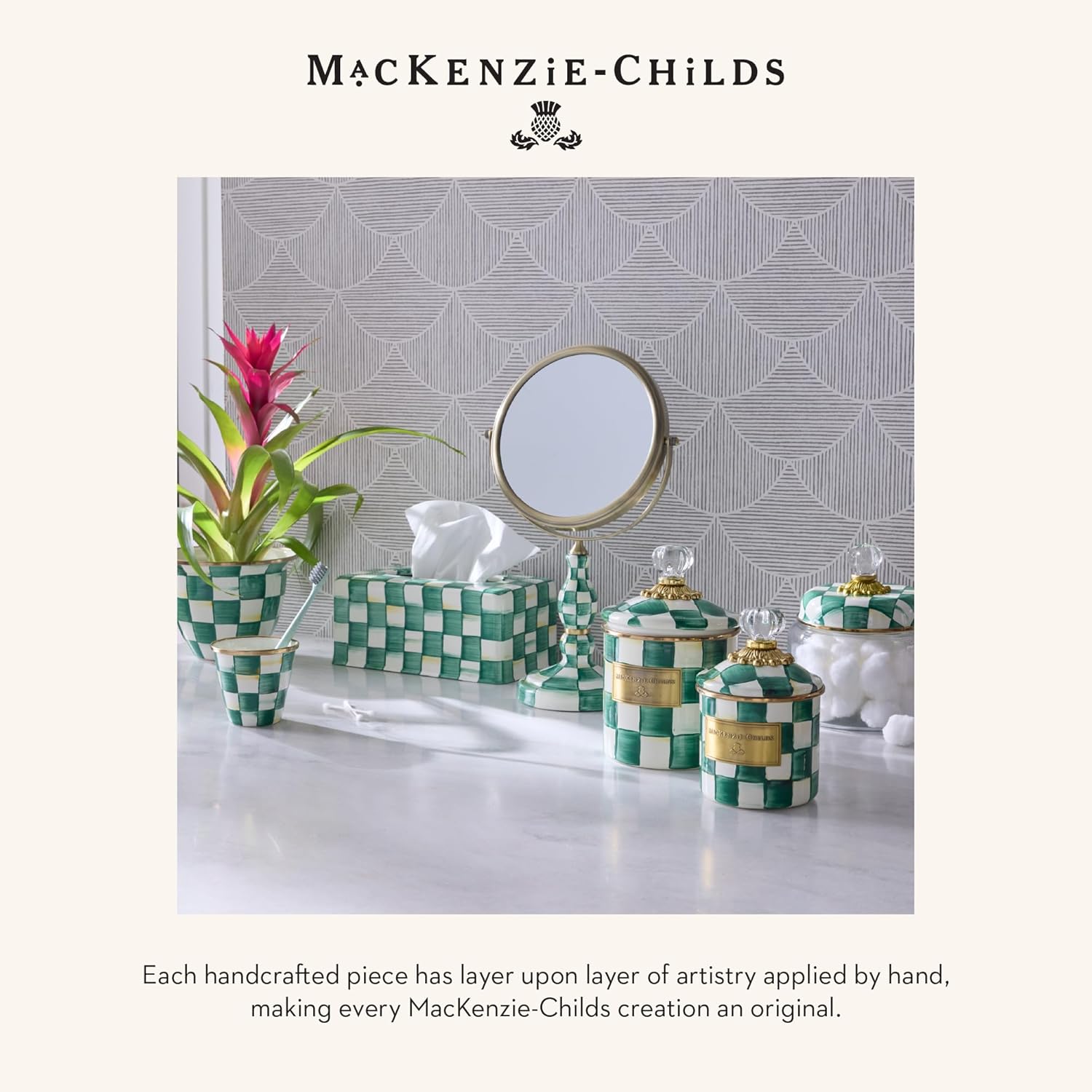 MACKENZIE-CHILDS Enamel Herb Pots, Small Plant Pots for Herbs or Flowers, Set of 3, Green-and-White Emerald Check