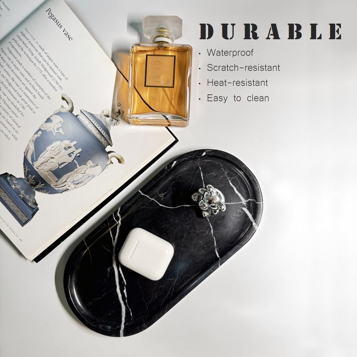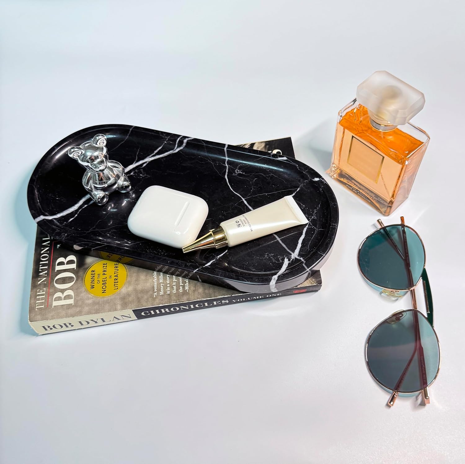 - NATURAL MARBLE FROM CHINA: Made from premium Black Root marble sourced in Guangxi, China. This marble oval tray showcases striking black-and-white natural veins, making each piece unique. A durable luxury stone tray that is stain-resistant, long-lasting, and perfect as a decorative tray for jewelry, perfume, or candles