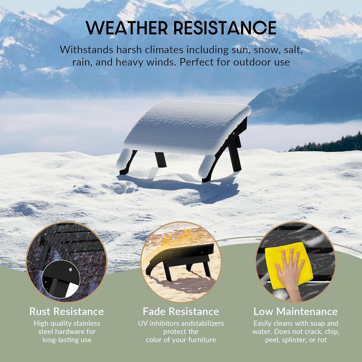 - All Weather Resistant: This Adirondack foot rest are made of HDPE plastic, its weather resistant and UV fade resistant material can withstand in various enviromental pressure and not easy to dent, crack , peel or rot as wood.