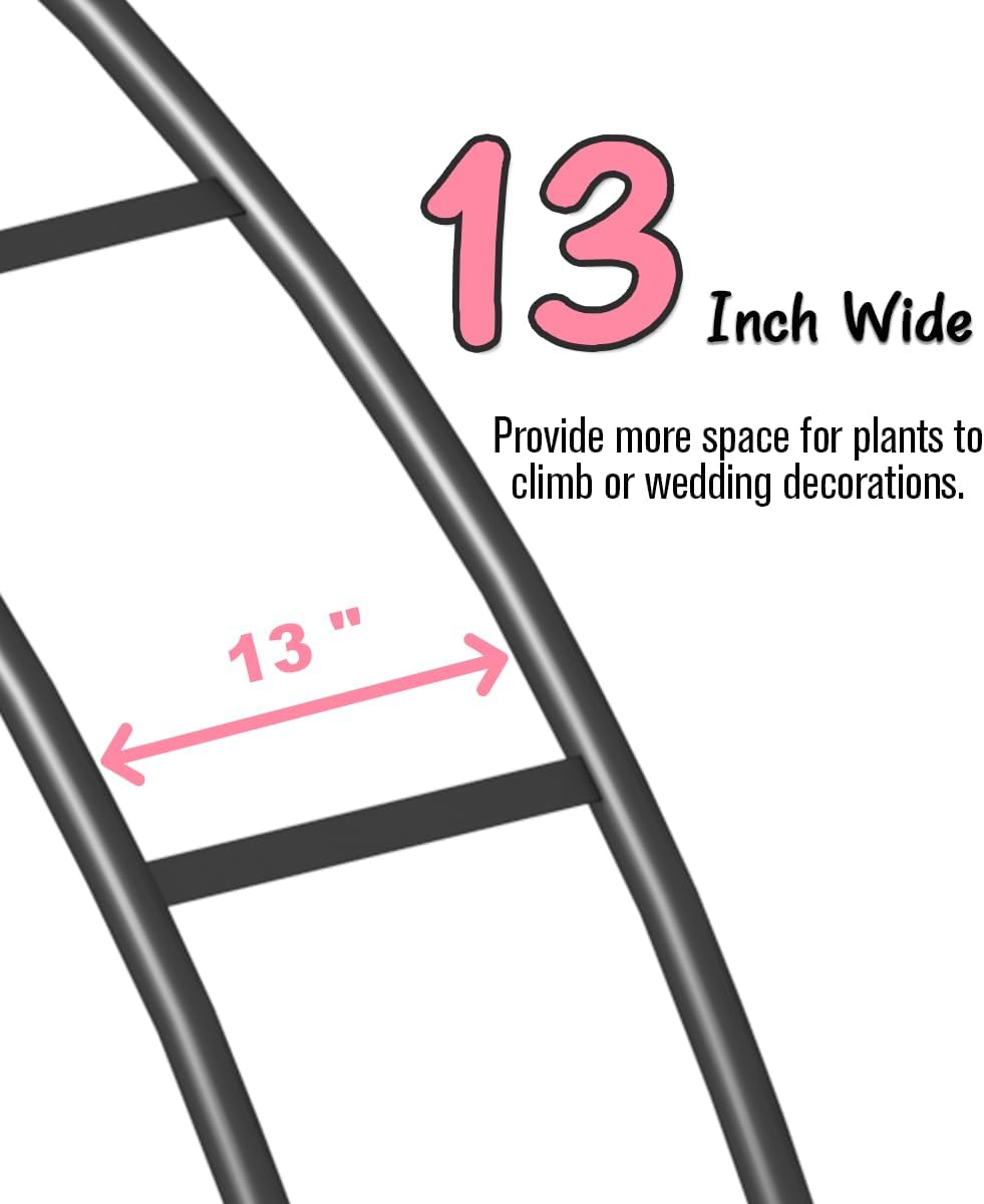 - Extra Large Dimension: With its expansive dimensions of 8 feet wide by 7 feet high, this grand wedding arch offers ample space for multiple individuals to pass through simultaneously. The sides were upgraded to lengthen the width to 13 inches for greater decorative area. For added stability, the arch is equipped with 4 sturdy hooks and 2 sandbags, ensuring it remains firmly in place.