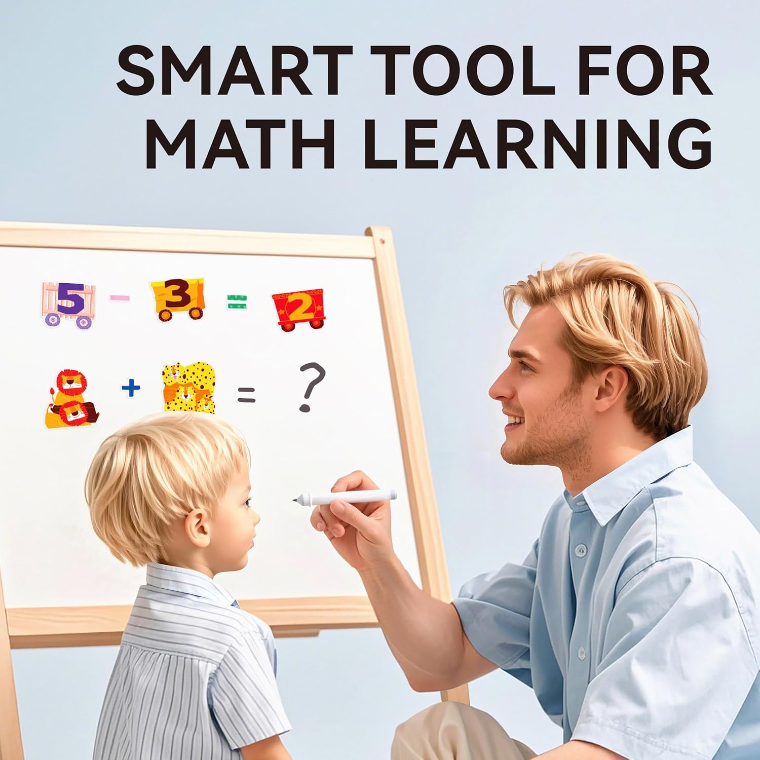 - LEARN NUMBERS 1-10 & BASIC MATH: Each 12"x8" sheet includes 25 stickers (2-5" each) features with animal train cars, numbers and math symbols (+, -, ×, ÷, =) to teach counting, sorting, and simple equations.